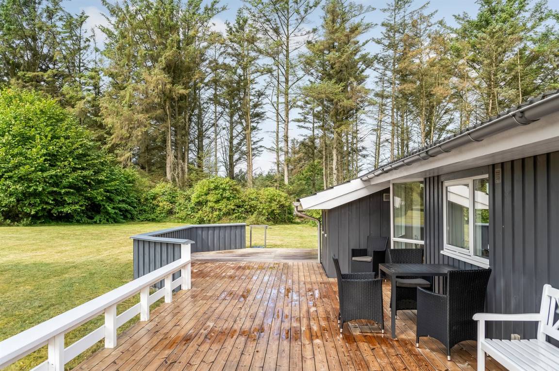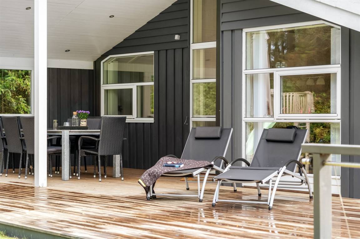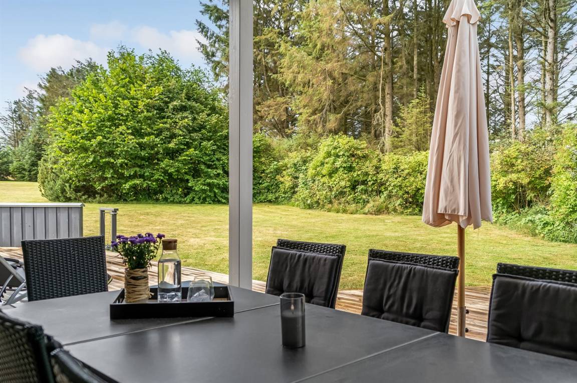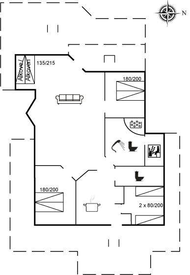 Sehr hübsches und gut eingerichtetes Luxusferienhaus aus Holz, 2007 mit u. a. Whirlpool und Sauna gebaut. Das Haus liegt auf einem großen Naturgrundstück - nur 700 m vom breiten Sandstrand bei Grønhøj entfernt. Zum Haus gehören gutes sowohl offenes als auch überdachtes Terrassenareal mit Gartenmöbeln. Innen gibt es überall helle Holzwände und -decken sowie Holzböden, jedoch beheizten Klinkerboden im Badezimmer und in der Gästetoilette. Das Badezimmer ist mit Duschnische, Fußbodenheizung, 2-Pers.-Whirlpool und Sauna sowie Waschmaschine eingerichtet. Hübsche, moderne Küche mit Geschirrspüler, Mikrowelle, Warmluftofen, Herd mit Ceran-Feld und Tiefkühlgerät. Schönes Wohnzimmer mit Kaminofen, TV mit digitalem Satellitenanschluss, DVD-Spieler und CD-Spieler sowie Zutritt zur Terrasse. Die Schlafplätze des Hauses verteilen sich auf 3 Schlafzimmer: 2 mit Doppelbett und 1 mit 2 Einzelbetten. Ferner Alkoven mit 2 Schlafplätzen im Wohnzimmer. Kinderbett, Kinderhochstuhl, Sandkiste und Schaukel für die Kinder. Carport auf dem Grundstück. Wärmepumpe zur Verfügung. Ein sehr schönes und gut eingerichtetes Ferienhaus, das sowohl für 1 als auch 2 Familien geeignet ist.