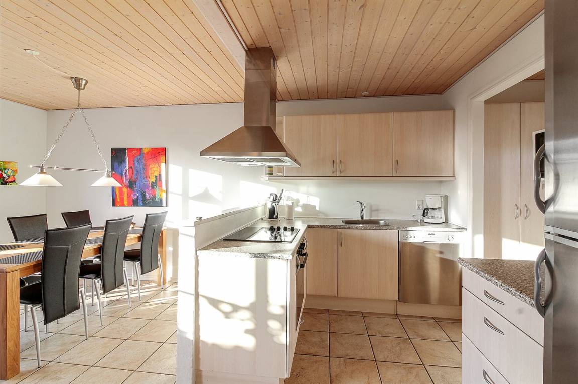 KücheDie Küche ist mit Kühlschrank ausgestattet. Außerdem gibt es 4 Keramik-Kochfelder, Umluftofen, Mikrowelle sowie Geschirrspüler. Fußbodenheizung in der Küche.