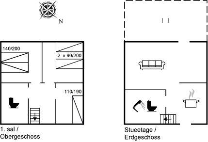 EinrichtungDas Ferienhaus eignet sich für 5 Personen. Die Ferienunterkunft hat eine Wohnfläche von 75 m², ist 2-stöckig, und wurde 2005 gebaut. Haustiere dürfen nicht mitgebracht werden. Fußbodenheizung im Wohnzimmer. Die Ferienunterkunft ist mit Waschmaschine ausgestattet. Wäschetrockner. Tiefkühlmöglichkeit mit 80 Liter Nutzinhalt.