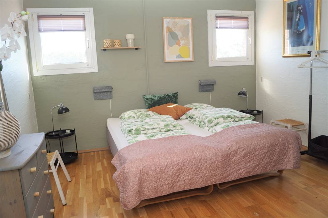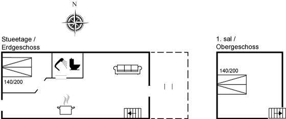 SchlafverhältnisseEs gibt einen Schlafraum. 4 Schlafplätze in Doppelbetten. 2 von diesen Schlafplätzen befinden sich im offenen Obergeschoss.