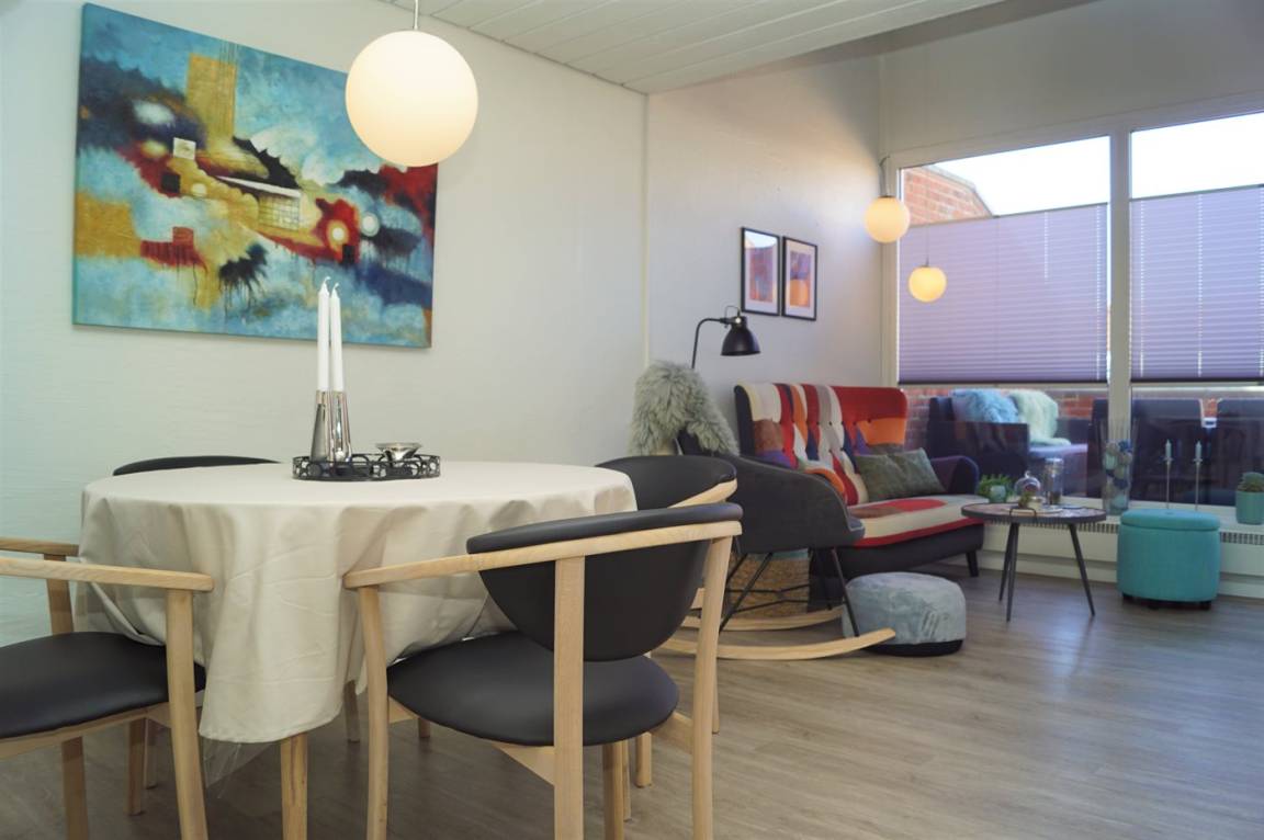 Die gepflegte Wohnung ist eine von insgesamt 40 Wohnungen der Ferienanlage und bietet Platz für 4 Personen – es gibt 2 Schlafplätze im Erdgeschoss und 2 Schlafplätze im Obergeschoss. Es gibt einen gemeinsamen, überdachten Außenpool und einen Kinderpool. Es ist möglich, im Zeitraum von Ostern bis zur Woche 42 im Swimmingpool zu baden, oder man kann zum breiten Sandstrand an der Nordsee gehen und sich im kühlen Nass vergnügen.