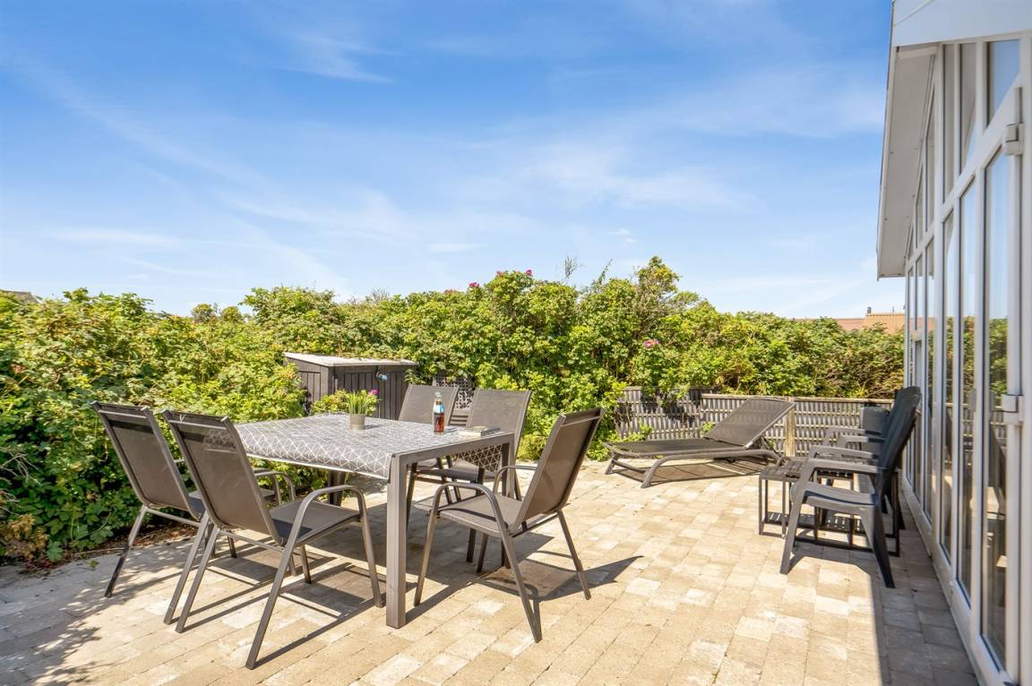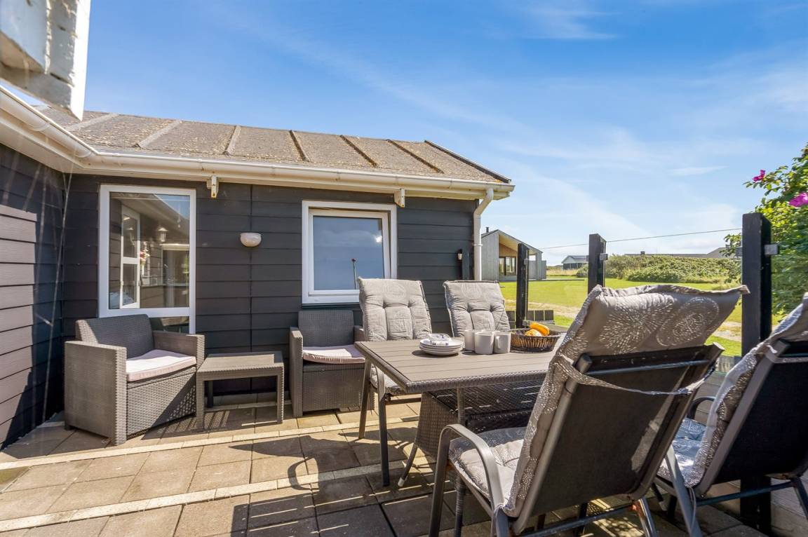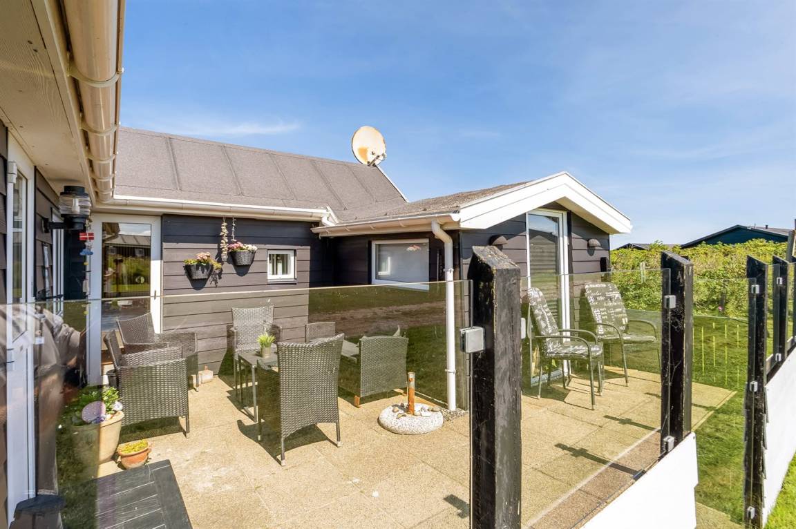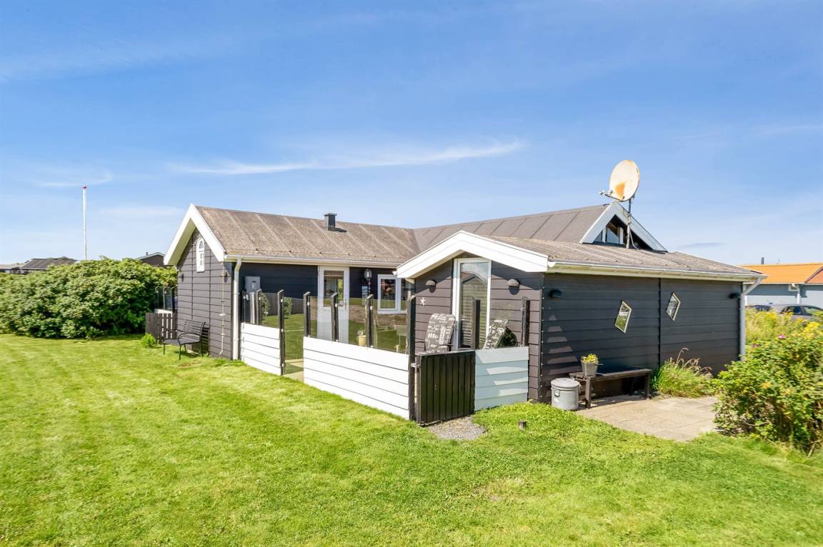 Dieses Ferienhaus liegt auf einem wunderschönen, leicht hügeligen Naturgrundstück, nahe am Ferienort Løkken und fußläufig von der Nordsee entfernt. Das Haus ist von Terrassen und gemütlichen Ecken umgeben, so dass du immer ein vor dem Wind geschützten Platz oder einen Platz in der Sonne finden kannst.
