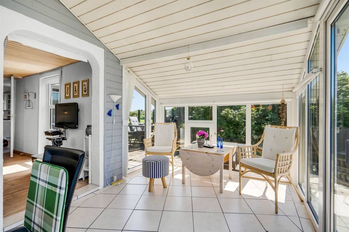 Der schöne Wintergarten mit seinen großen Glasfronten ist besonders für die etwas kälteren Sommerabende zu empfehlen. Das Haus lädt zum gemütlichen Beisammensein für die kleine Familie oder ein Ehepaar ein.