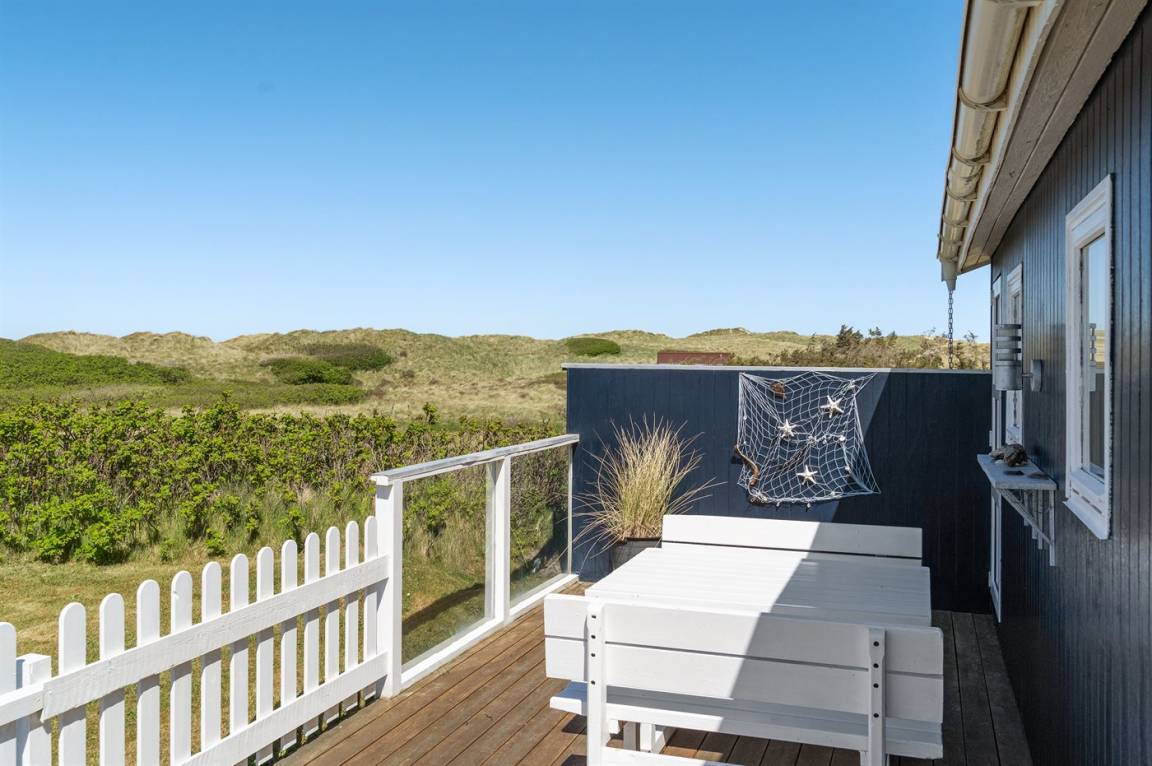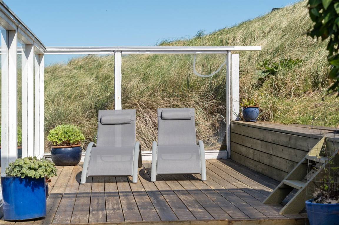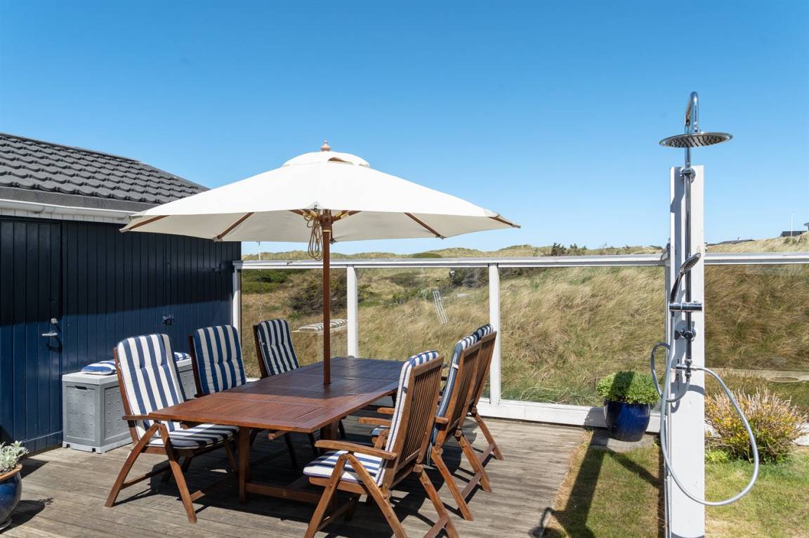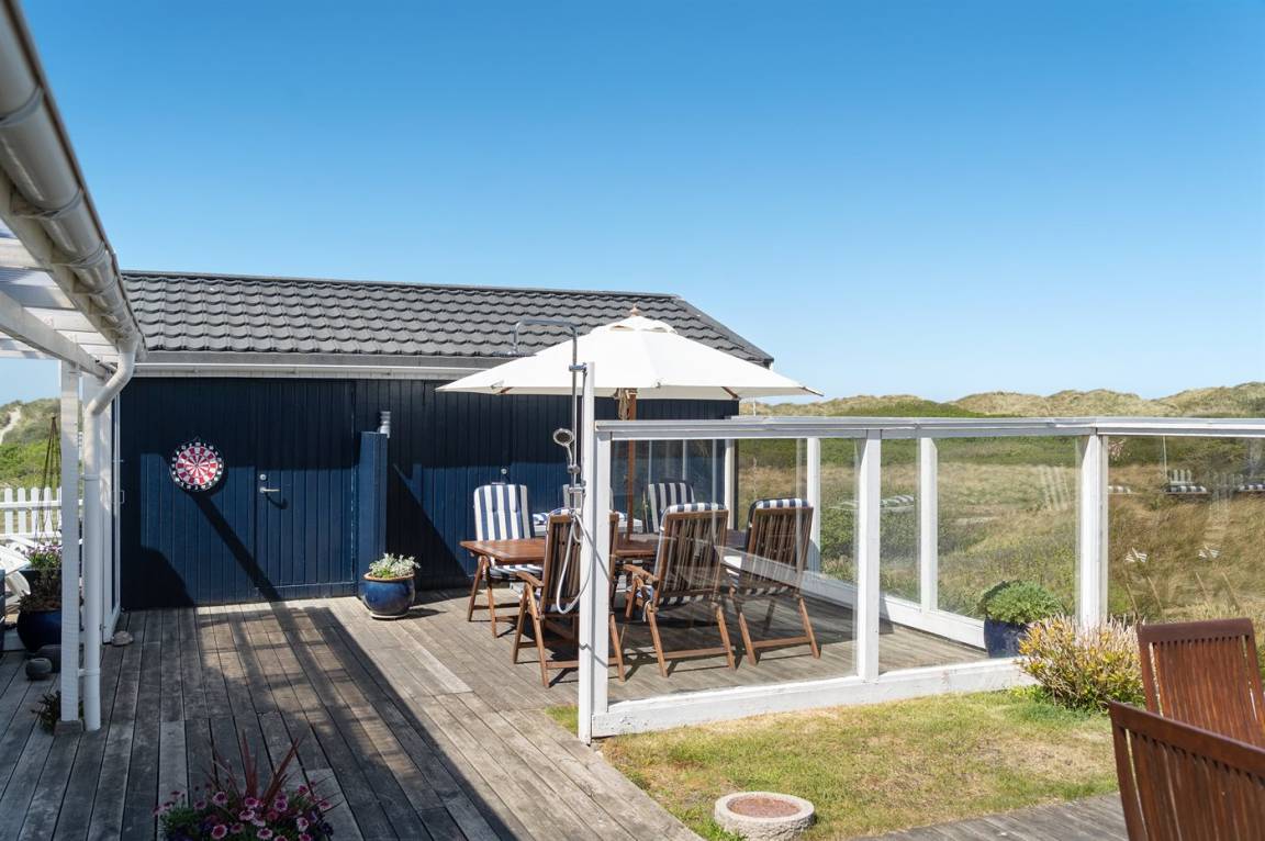 DraußenDie Ferienunterkunft liegt auf einem 800 m² großen Dünengrundstück. Die Entfernung zum Meer beträgt 100 m. Die nächste Einkaufsmöglichkeit liegt 900 m entfernt. Es steht ein 100 m² Terrassenareal zur Verfügung. Zutritt zu einem Wintergarten. Außendusche. Es steht ein Grill zur Verfügung. Parkplatz auf dem Grundstück.