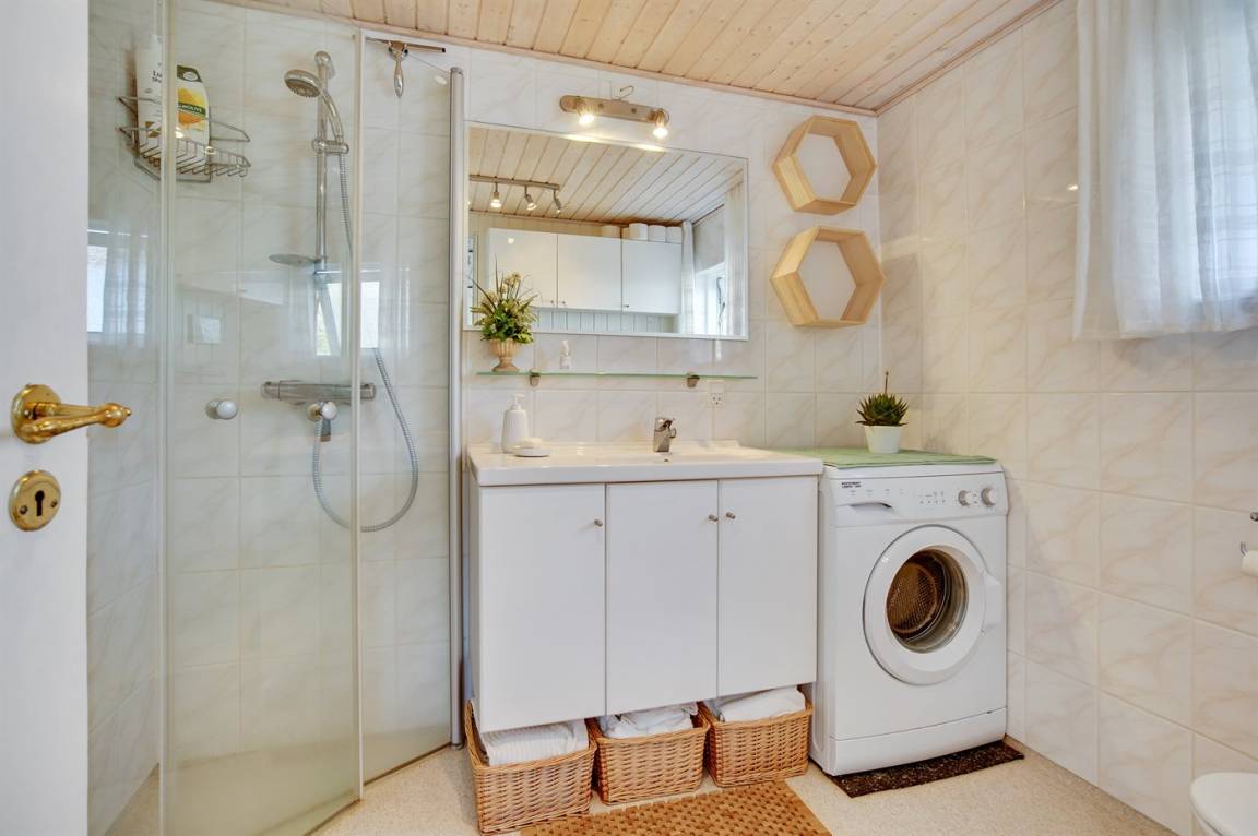 Dicht am schönen Badestrand, mit Meeresblick sowohl vom Haus als auch vom Grundstück, liegt dieses gemütliche Ferienhaus. Zum Haus gehört ein kleines Gästehaus, das mit Doppelbett eingerichtet ist.