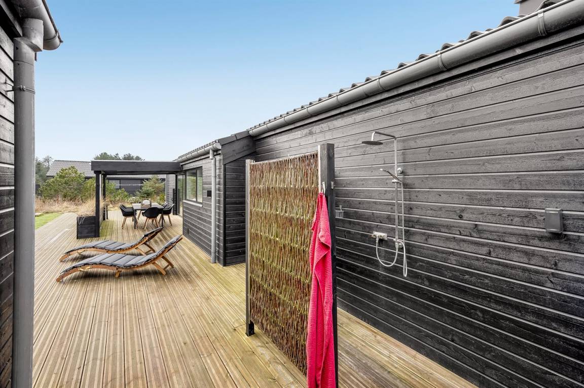 DraußenDie Ferienunterkunft liegt auf einem 2548 m² großen Naturgrundstück. Die Entfernung zum Meer beträgt 900 m. Die nächste Einkaufsmöglichkeit liegt 1200 m entfernt. Es steht ein offenes Terrassenareal zur Verfügung. Außerdem gibt es überdachte Terrasse. Schaukel. Sandkasten.Lagerfeuerstelle. Windschutzhütte. Außendusche. Es steht ein Grill zur Verfügung. Parkplatz auf dem Grundstück.