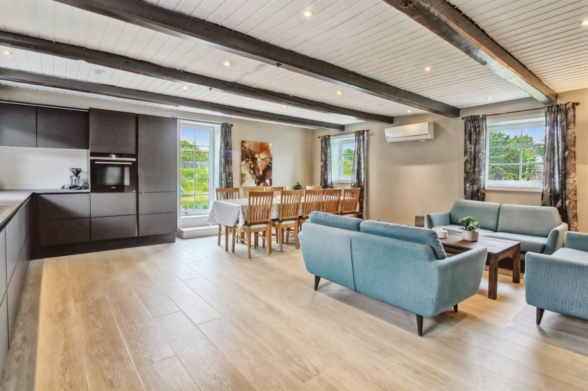 Dieser ehemalige Bauernhof eignet sich für 10 Personen sowie 1 Kleinkind bis zu 3 Jahren. Die Ferienunterkunft hat eine Wohnfläche von 244 m² und wurde 1827 gebaut. 2024 wurde die Ferienunterkunft teilweise renoviert. Es ist erlaubt 2 Haustiere mitzubringen. Die Ferienunterkunft ist mit energiesparender Wärmepumpe ausgestattet. Die Ferienunterkunft ist mit Waschmaschine ausgestattet. Wäschetrockner. Tiefkühlmöglichkeit mit 100 Liter Nutzinhalt. Es gibt außerdem einen Kaminofen. Für die jüngsten Feriengäste ist 1 Kinderhochstuhl vorhanden.