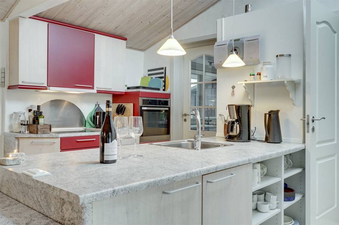 „Cleanliness: Et meget overfyldt sommerhus med hensyn til køkkenartikler. Der var vinglas på 3-4 forskellige pladser, og jeg tror at en af placeringerne nok ikke blev brugt hyppigt, da glassene så lidt støvede ud. Et stort udvalg af spil og underholdning var placeret i stuen, og kunne efter min smag godt have været mere rydeligt. Puslebord og blespand stod fremme i udestuen. Det synes jeg umiddelbart ikke så godt om.“