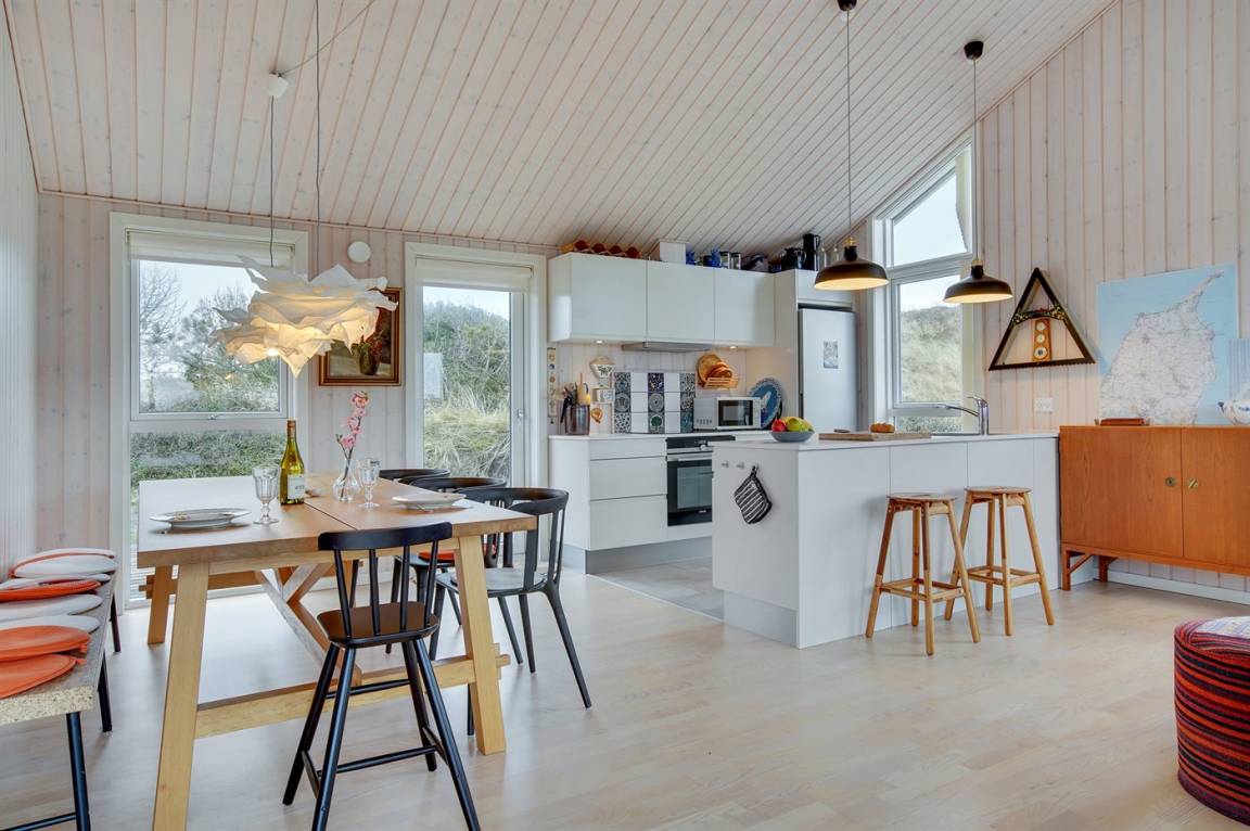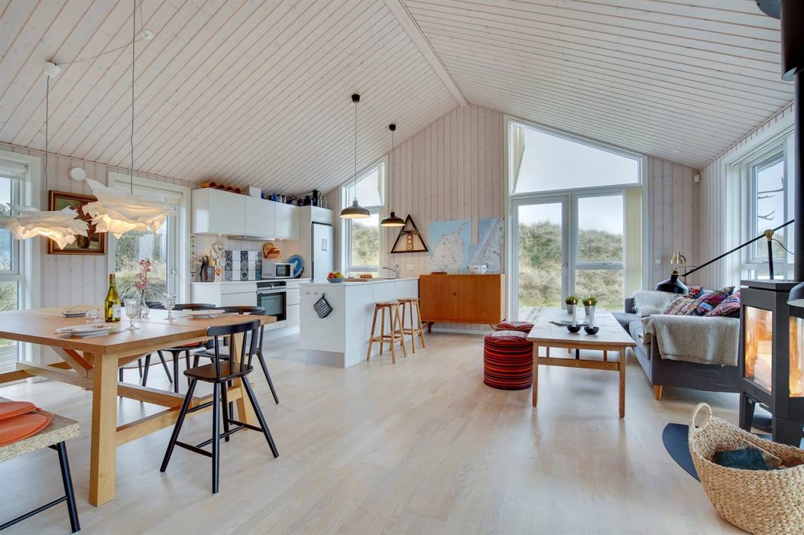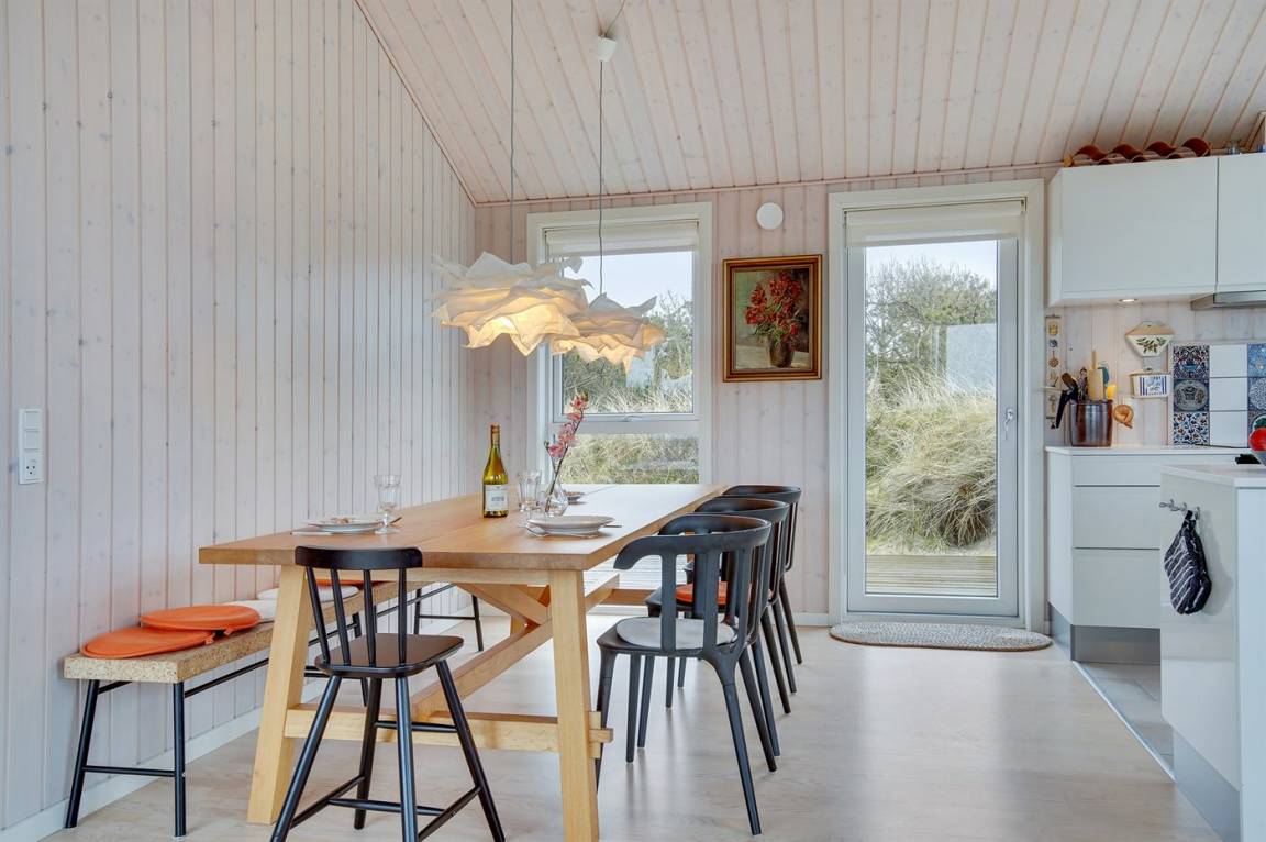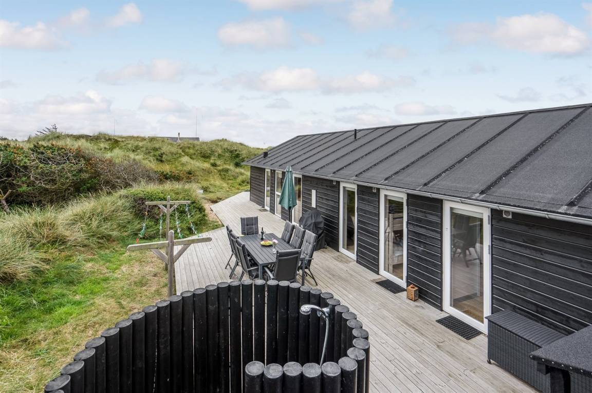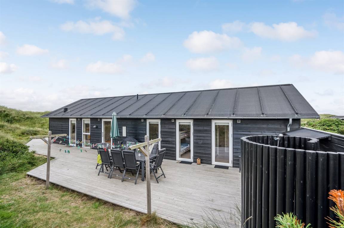 Das Ferienhaus eignet sich für bis zu 8 Personen. Die Unterkunft wurde 2016 erbaut und ist 112 m² groß. Es dürfen 2 Haustiere mitgebracht werden (Katzen sind nicht gestattet). Die Ferienunterkunft ist mit 1 energiesparenden Wärmepumpe ausgestattet. Alle Fliesenböden sind mit Fußbodenheizung ausgestattet. Es steht eine Waschmaschine, ein Wäschetrockner, eine Tiefkühlmöglichkeit mit 10 l Kapazität und ein Kamin zur Verfügung. Die Ferienunterkunft liegt auf einem 3899 m² großen Naturgrundstück. Bis zum Meer sind es 200 m. Das nächste Geschäft liegt 450 m entfernt. Zur Ferienunterkunft gehört ein 100 m² großer, offener Terrassenbereich. Es gibt einen Geräteraum. Spielhaus. Außendusche. Parkmöglichkeiten an der Ferienunterkunft. Insgesamt gibt es 4 Schlafzimmer. Die Schlafplätze verteilen sich wie folgt: 6 Schlafplätze befinden sich in Doppelbetten (jeweils 2 Einzelbetten) und 2 Schlafplätze in Etagenbetten. Die Küche ist mit 1 Kühlschrank ausgestattet. Zudem sind 4 Induktionskochplatten, ein Backofen, eine Mikrowelle und eine Spülmaschine vorhanden. Es gibt 2 Badezimmer mit Fußbodenheizung, Duschnische und 2 Toiletten. In der Ferienunterkunft gibt es 1 Fernseher mit Smart-TV. Fernsehsender werden über Internet empfangen. Sie empfangen mindestens 4 dänische Sender. Es stehen Bluetooth-Lautsprecher zur Verfügung, sodass Sie über ihren eigenen PC/Tablet oder ihr eigenes Smartphone Musik oder Radio hören können. WLAN (Glasfaser) ist vorhanden.
