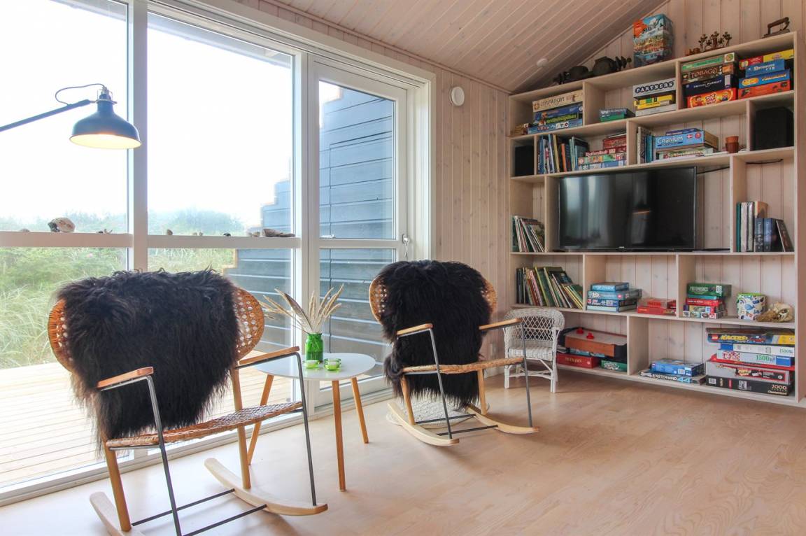Das Haus ist modern und beweist viel Liebe zum Detail. Durch die großen Fenster strömt das wunderschöne nordische Licht herein. Vom Wohnzimmer aus haben Sie einen tollen Ausblick auf die Dünenlandschaft, und an klaren Tagen können Sie in der Ferne sogar die Nordsee sehen. Das Haus ist nach dem Geschmack des Eigentümers mit schönen Möbeln eingerichtet. Das Haus eignet sich für eine große oder zwei kleine Familien. Alternativ können Sie natürlich auch Großeltern oder gute Freunde auf eine Übernachtung in das Ferienhaus einladen. Die Kinder werden es lieben, die Ausziehleiter zum gemütlichen offenen Obergeschoss hochzuklettern – vielleicht für ein oder zwei Spiele auf dem mitgebrachten iPad? Dank hauseigenem WLAN kein Problem. Übrigens: Der Fernseher hat keinen Antennenempfang, Sie können jedoch alle Sender auf dem eigenen PC/Tablet oder Smartphone via Chromecast streamen. Alternativ können Sie hierzu die hauseigene Tastatur und Maus verwenden. Freuen Sie sich auf einen gelungenen Urlaub in einer schönen Umgebung.