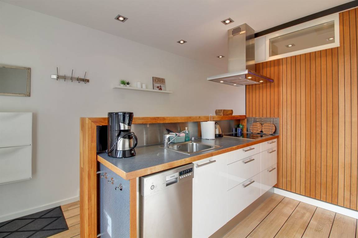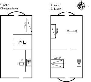 DraußenDie Ferienunterkunft liegt auf einem 50 m² großen Die Entfernung zum Meer beträgt 200 m. Die nächste Einkaufsmöglichkeit liegt 125 m entfernt. Es steht ein 6 m² Terrassenareal zur Verfügung. Parkplatz auf dem Grundstück.