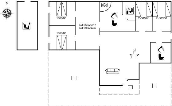 MultimedienIn der Ferienunterkunft gibt es einen Fernseher. 1 Smart-TV.1 Bluetooth-Lautsprecher. Mindestens 4 dänische Fernsehsender. Mindestens 4 deutsche Fernsehsender. Es steht kabellose Internetverbindung zur Verfügung.