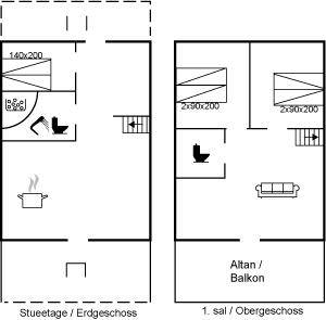 SchlafverhältnisseDie Schlafplätze verteilen sich auf 3 Schlafräume. 4 Schlafplätze in Doppelbetten. 2 Schlafplätze in Einzelbetten. 1 Schlafplatz auf einer Matratze. 1 von diesen Schlafplätzen befindet sich im offenen Obergeschoss.
