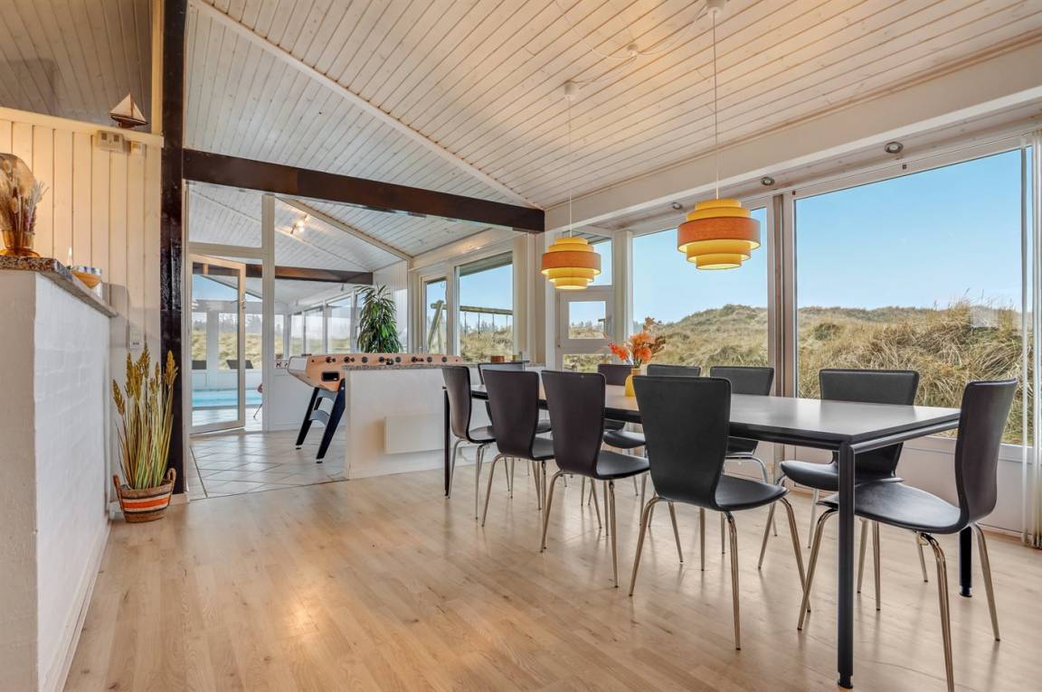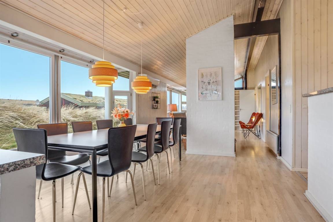 EinrichtungDas Ferienhaus eignet sich für 10 Personen sowie 1 Kleinkind bis zu 3 Jahren. Die Ferienunterkunft hat eine Wohnfläche von 143 m² und wurde 1987 gebaut. 2005 wurde die Ferienunterkunft renoviert. Es ist erlaubt 3 Haustiere mitzubringen. Die Ferienunterkunft ist mit energiesparender Wärmepumpe ausgestattet. Die Ferienunterkunft verfügt über einen Waschtrockner. Tiefkühlmöglichkeit mit 50 Liter Nutzinhalt. Es gibt außerdem einen Kaminofen. Für die jüngsten Feriengäste ist 1 Kinderhochstuhl vorhanden.