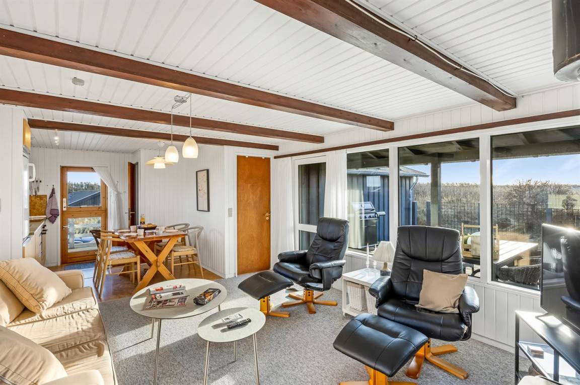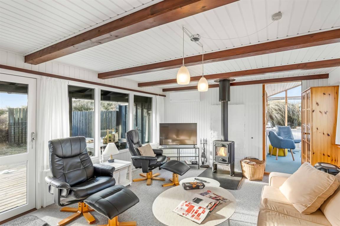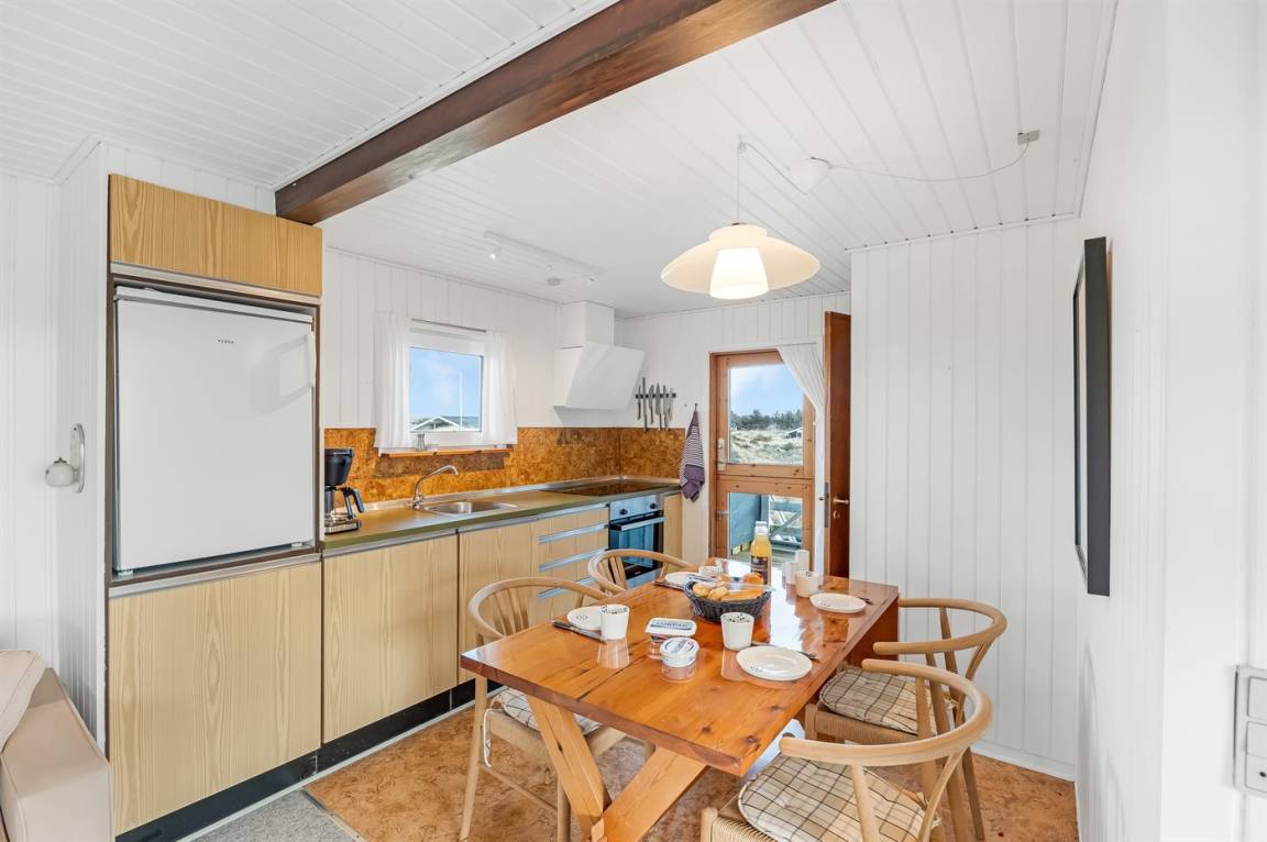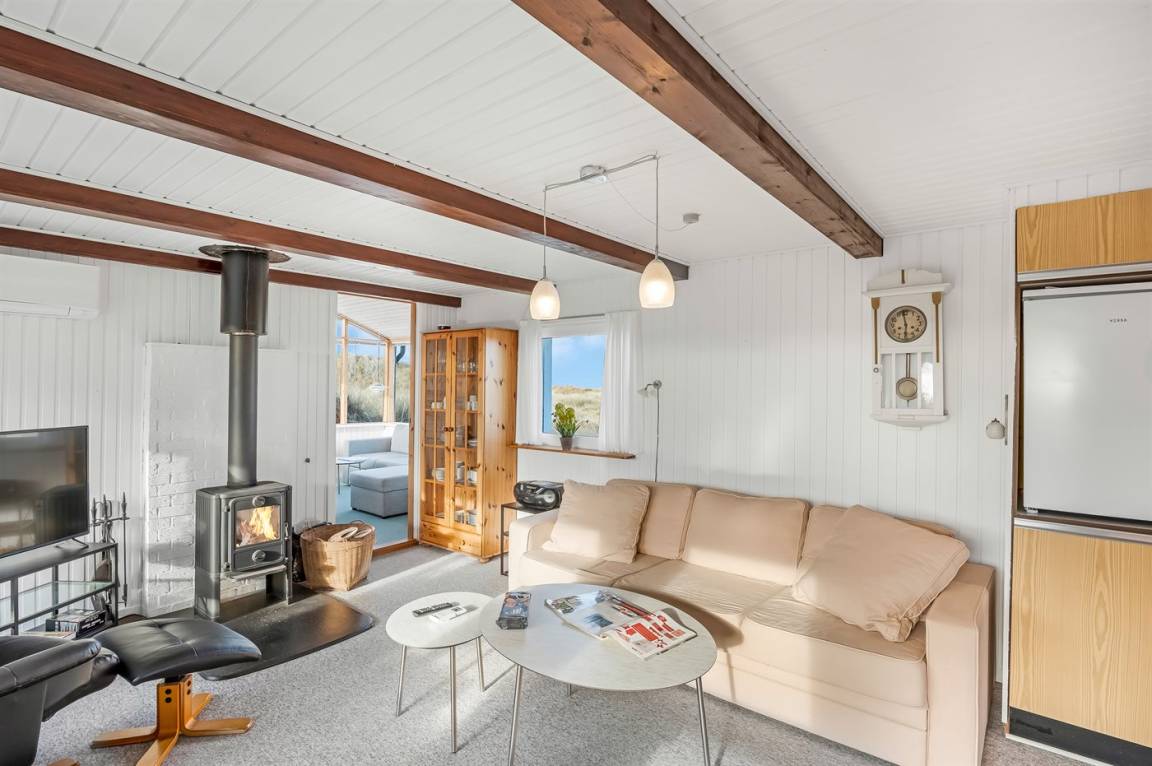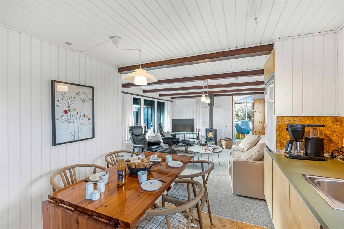 Innen erwartet dich eine helle, entspannte Atmosphäre mit großen Fensterflächen, die die Natur ganz nah heranholen – mit Strandhafer direkt vor dem Fenster. Wohnbereiche und Küche sind offen miteinander verbunden und schaffen einen harmonischen Rahmen für gemeinsames Beisammensein. Das Haus verfügt über zwei Schlafzimmer sowie ein Schlafsofa, ein Badezimmer und ein separates WC und wird mit Wärmepumpe und Kaminofen beheizt.