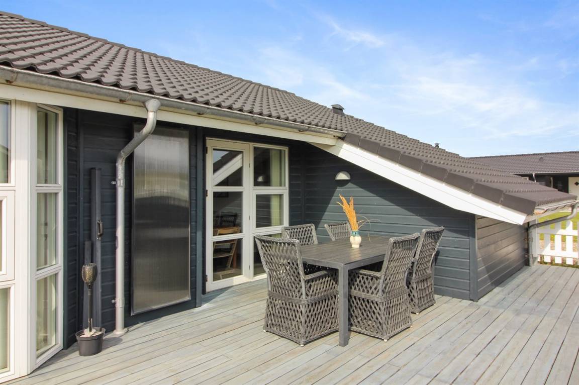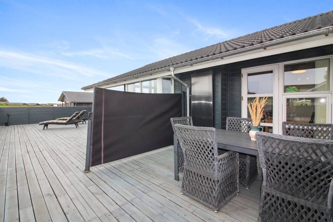 Das Ferienhaus verfügt über eine große, geschlossene Terrasse, die sich wunderbar für Familien mit Kindern oder kleineren Hunden eignet. Ganze 175 m² der 230 m² großen Terrasse sind überdacht.