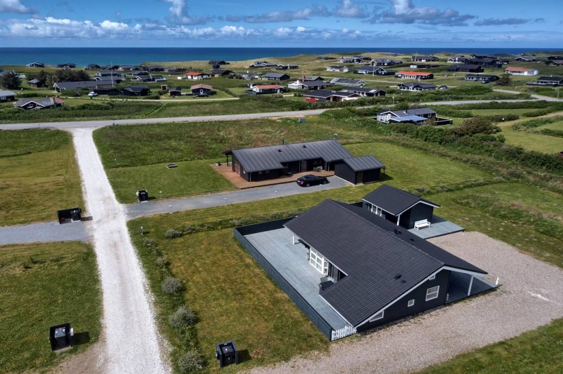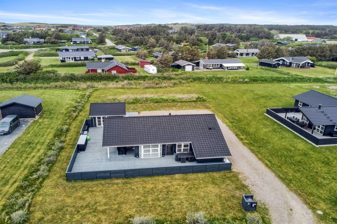 DraußenDie Ferienunterkunft liegt auf einem 1089 m² großen Naturgrundstück. Die Entfernung zum Meer beträgt 400 m. Die nächste Einkaufsmöglichkeit liegt 800 m entfernt. Es steht ein 230 m² Terrassenareal zur Verfügung. Außerdem gibt es 43 m² überdachte Terrasse. Davon insgesamt 175 m² geschlossene Terrasse. Geräteraum. Sandkasten. Es steht ein Grill zur Verfügung. Parkplatz auf dem Grundstück.