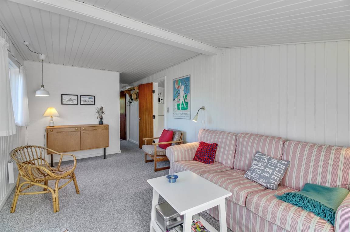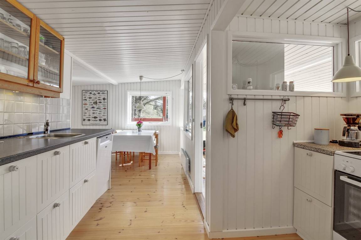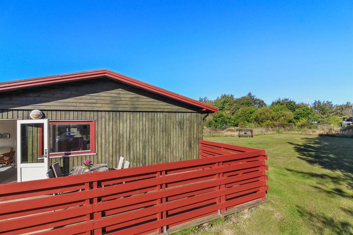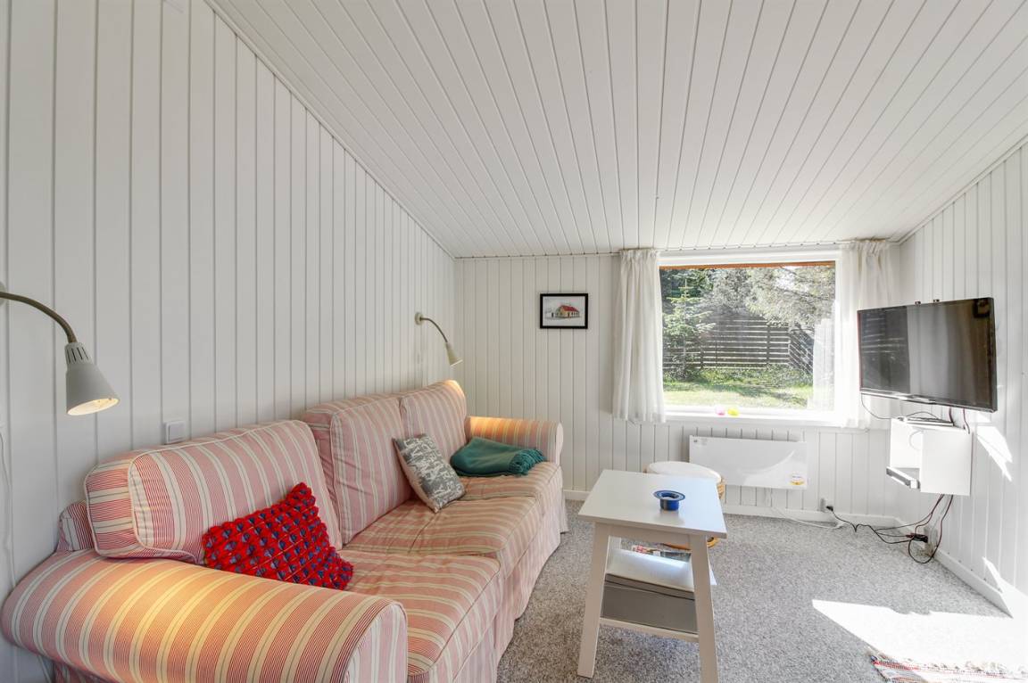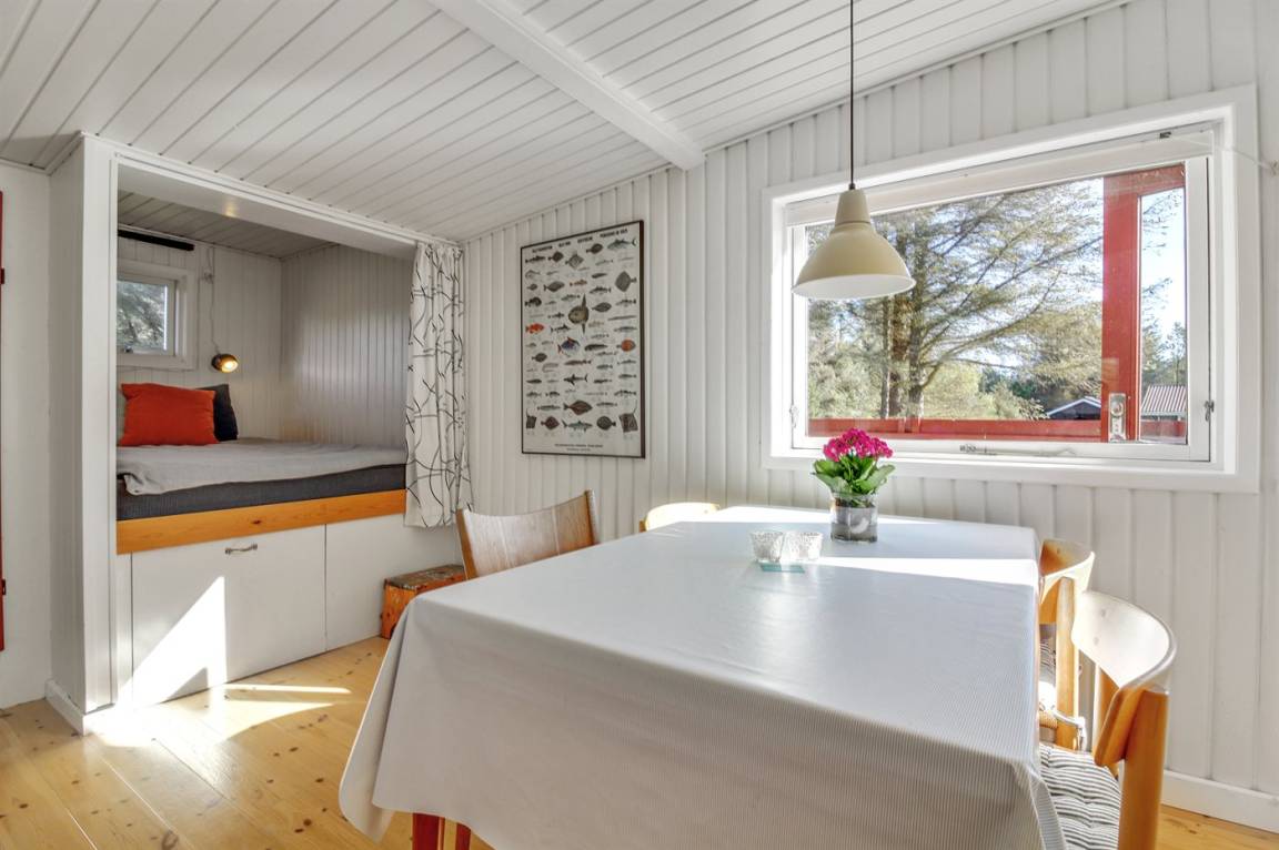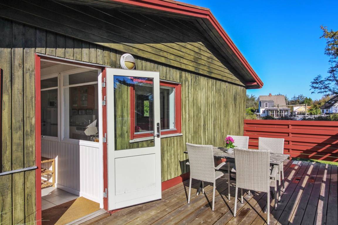Ein traditionelles Ferienhaus. Zum Haus gehört schöner Rasen und sowohl Morgen- als Abendterrasse. Nur 10 Gehminuten bis zum Strand. Achtung 2 der Schlafplätze sind im Wohnzimmer in der Alkoven.