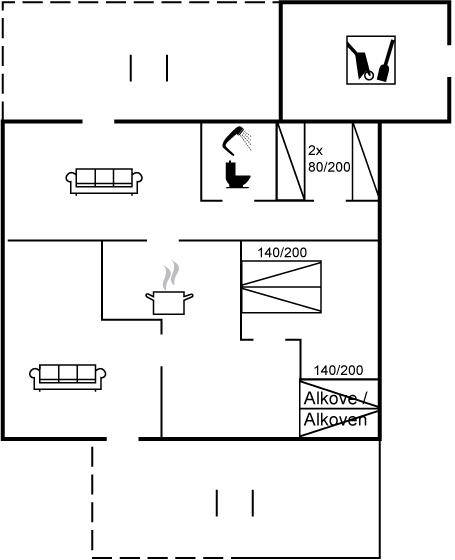 SchlafverhältnisseDie Schlafplätze verteilen sich auf 2 Schlafräume. 2 Schlafplätze in einem Doppelbett. 2 Schlafplätze in Einzelbetten.2 Schlafplätze im Alkoven.
