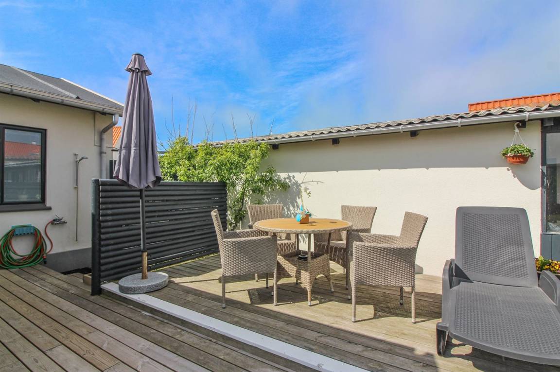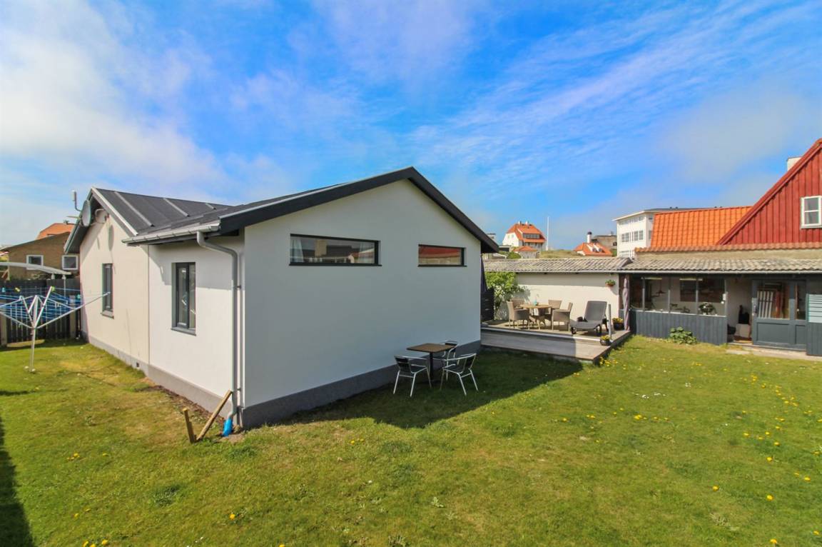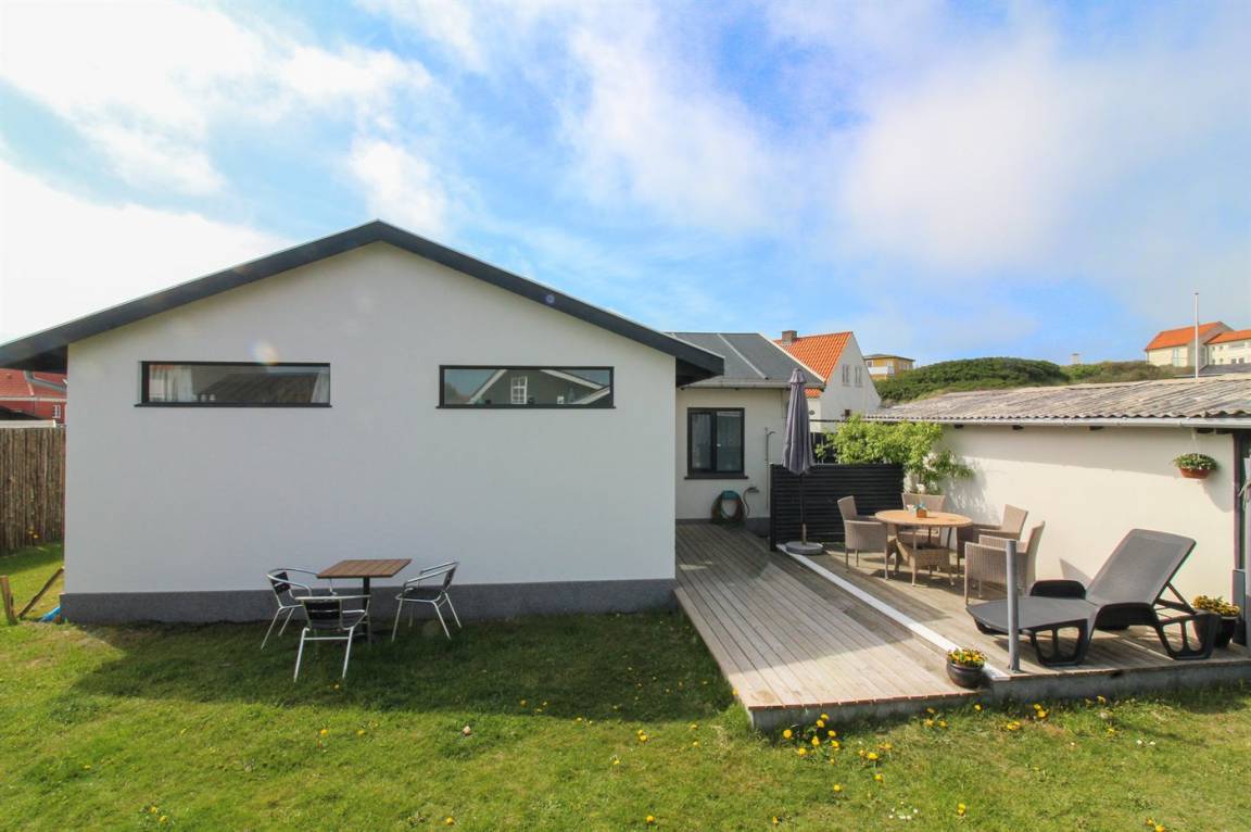 Unmittelbar außerhalb der Stadtmitte von Løkken und dicht am Strand liegt dieses gepflegte Ferienhaus, auf einem abgeschirmten Grundstück.