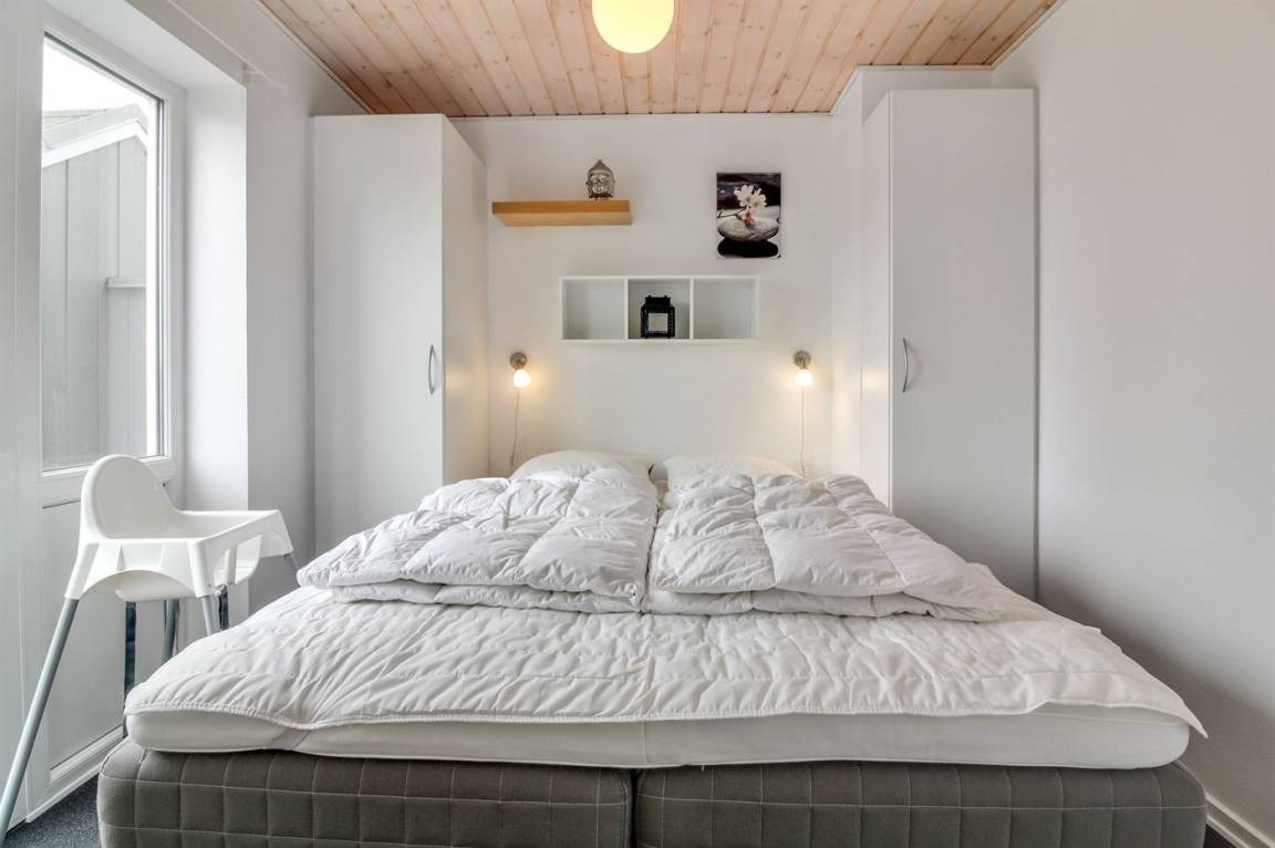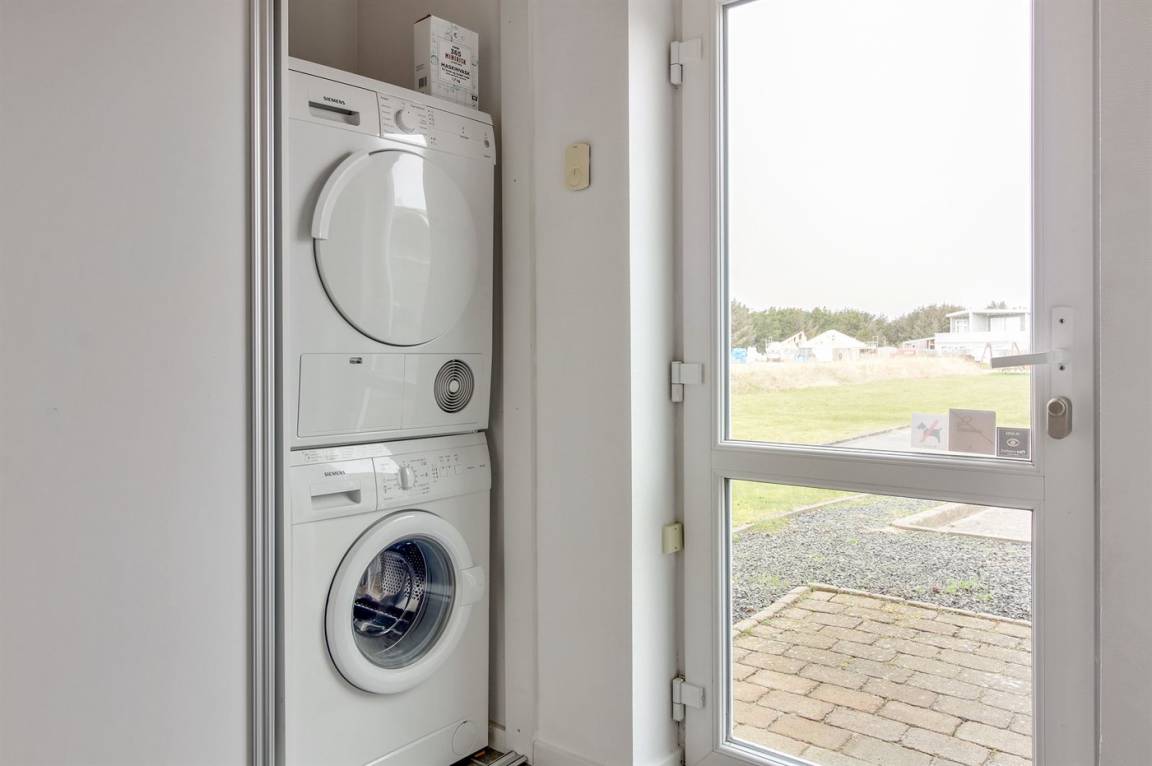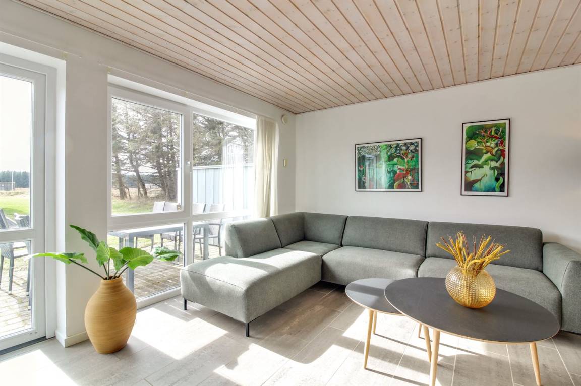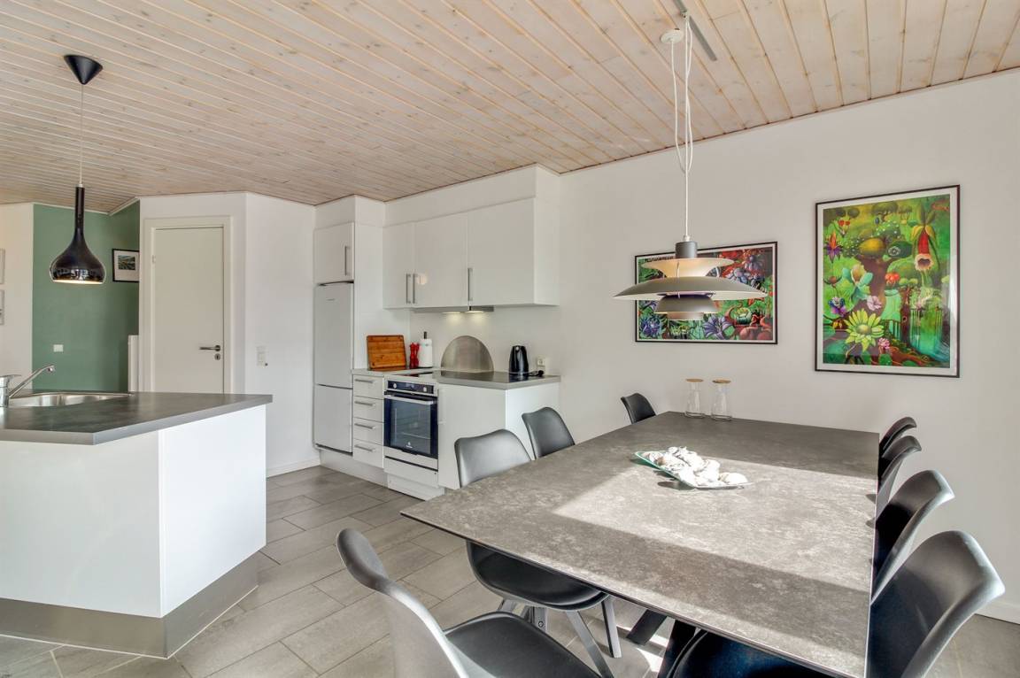 „The vacation at the holiday home: Indenfor absolut i fornuftig stand rengøringsmæsssigt, udstyrsmæssigt måske der bør ses på kopper og glas m. m. The local office: God service The holiday home itself: Ja men følgende bemærkninger. Udenfor Da det er hus, der slutter rækkehusene, står der enkelte grantræer, der smider nåle, især ved storm/blæsevejr. Det medførte desværre at bilen måtte i vaskeghallen ved Brugsen i Løkken og terassen var fyldt med grannåle allerede ved ankomsten til huset. Burde være klar til forbedringer.“
