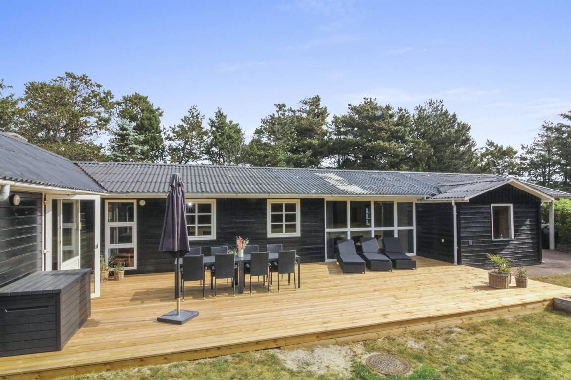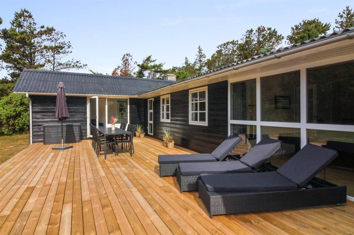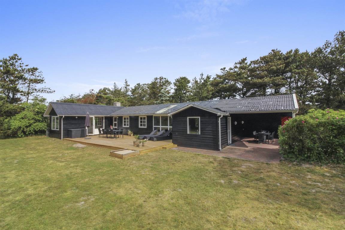 Gut gelegenes Ferienhaus auf einem sehr großen und geschlossenen Grundstück, am Ende einer Sackgasse, in einem attraktiven Ferienhausgebiet in der Nähe des Strandes und Einkaufsmöglichkeit.