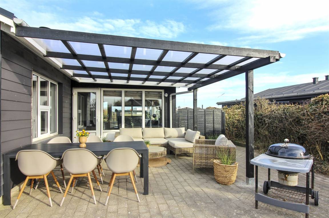 DraußenDie Ferienunterkunft liegt auf einem 806 m² großen Naturgrundstück. Das Grundstück ist eingezäunt. Die Entfernung zum Meer beträgt 300 m. Die nächste Einkaufsmöglichkeit liegt 500 m entfernt. Es steht ein 100 m² Terrassenareal zur Verfügung. Außerdem gibt es 16 m² überdachte Terrasse. Parkplatz auf dem Grundstück.