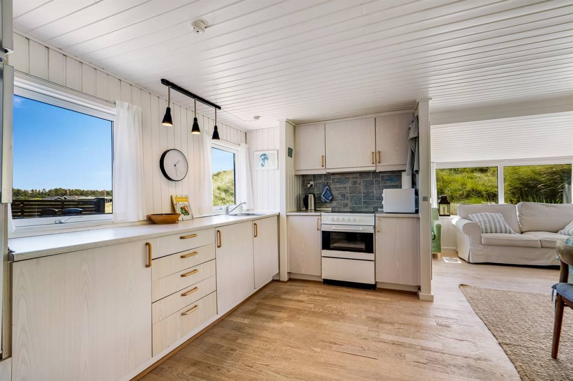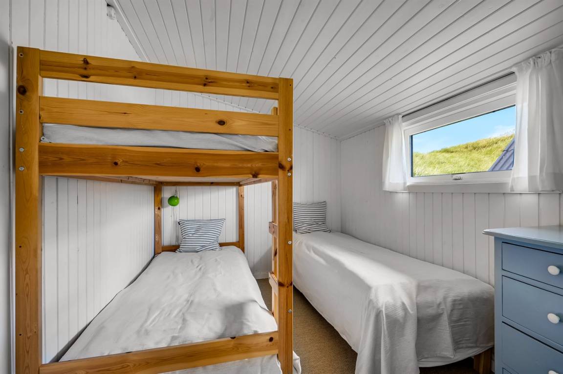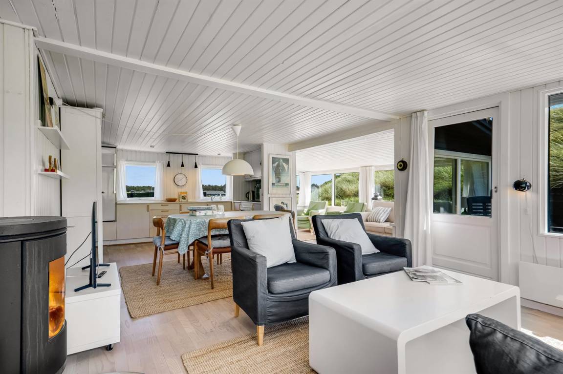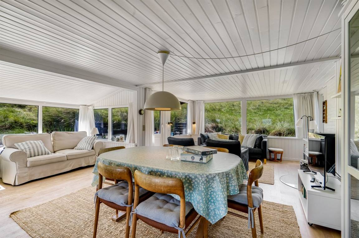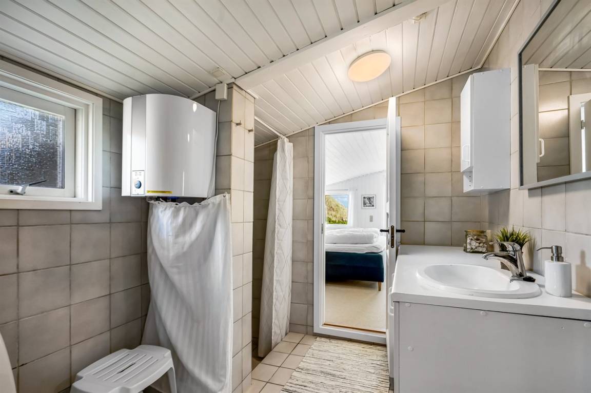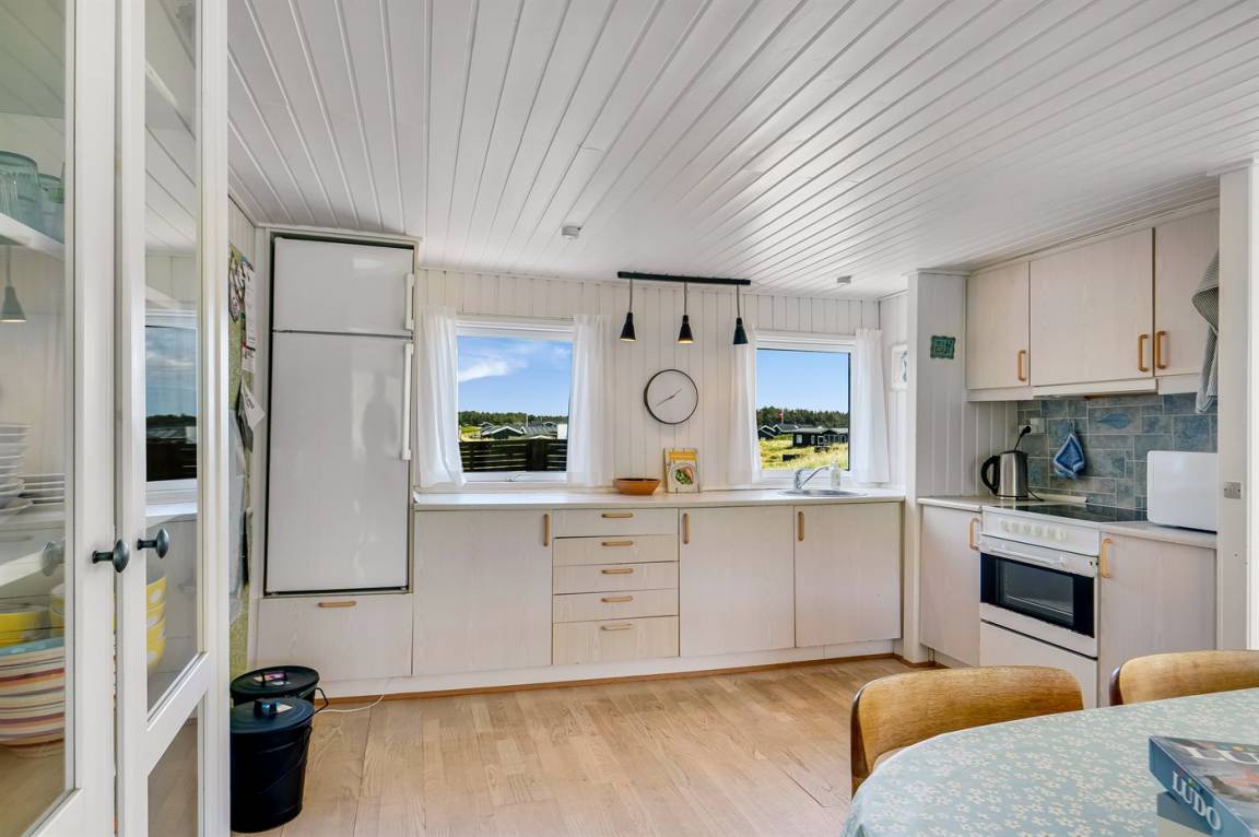 „Advice to other guests: Man skal ikke været høj for at bo i sommerhuset, meget lavloftet flere steder i huset The vacation at the holiday home: Sommerhusets beliggenhed er fantastisk - i klitterne og skønt ugenert. Badeværelset og køjeværelset trænger til istandsættelse. Badeværelsesskabe og spejlskab virkelig slidt. Ingen korresponderende lys til badeværelset, når man kommer fra soveværelset. Skal igennem badeværelset og tænde lyset ud til badeværelset i køjeværelset, hvilket er enormt mørkt om natten! Soveværelset som er af nyere dato, er lyst og rart at være i og stuen hyggelig, The holiday home itself: Vi kunne godt se på billederne at huset og møblement ikke var af nyere dato. Det slidte og meget mørke badeværelse overraskede dog noget.“