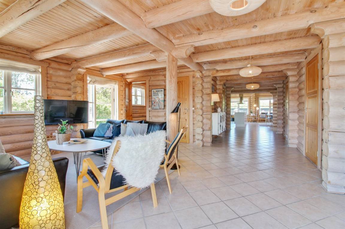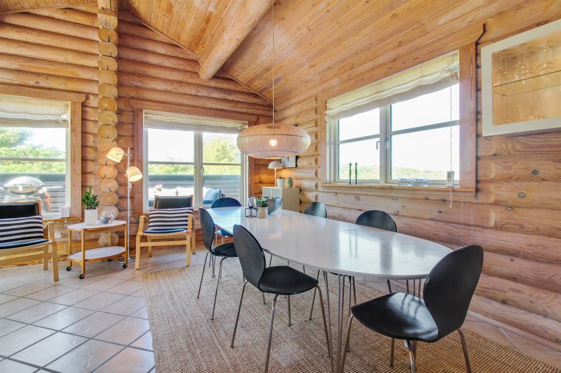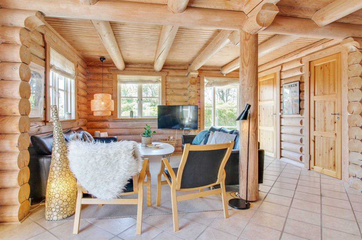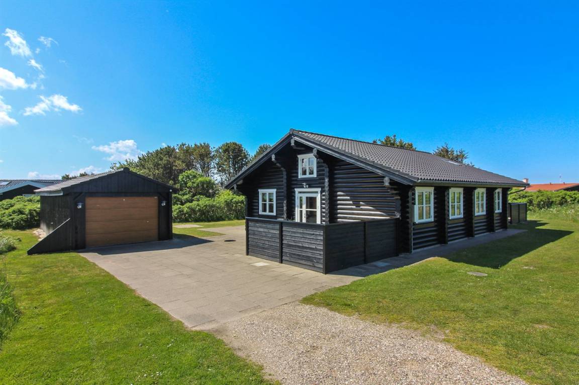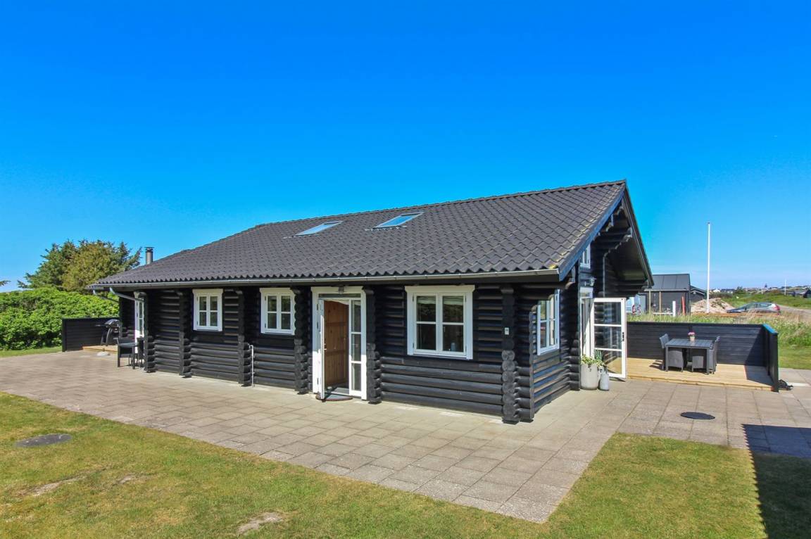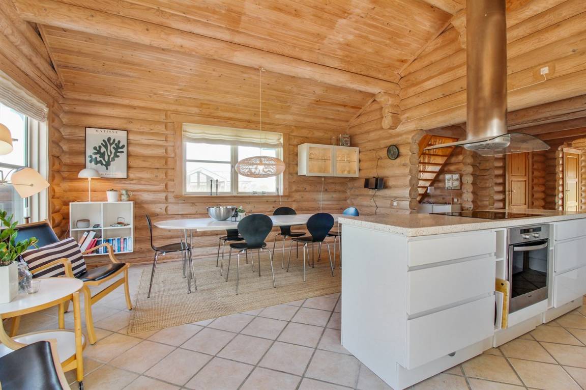 Ferienhaus am Ende einer Sackgasse in einem ruhigen Ferienhausgebiet. Das Haus ist ein schönes Blockhaus mit 60 m² offenem Obergeschoss, in dem die Kinder viel Zeit zum Spielen verbringen können.
