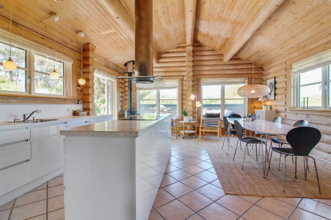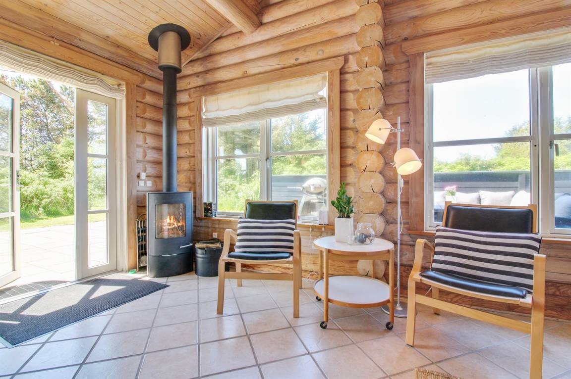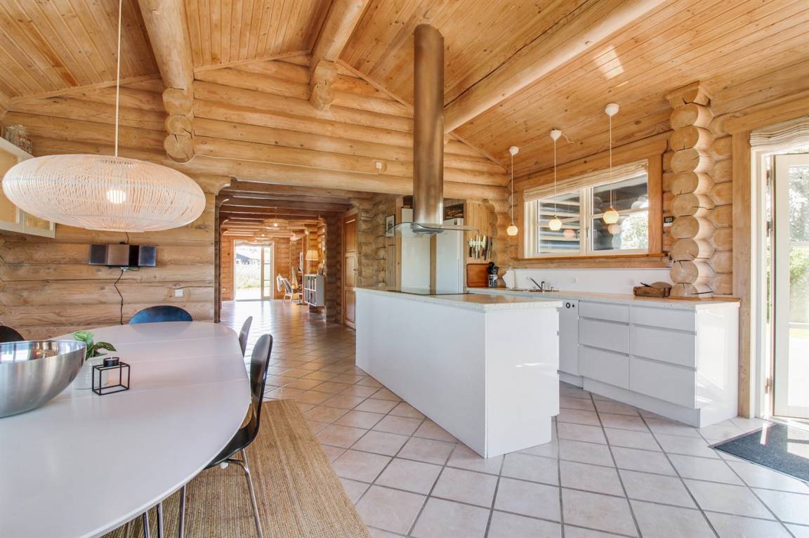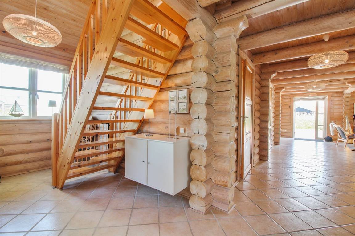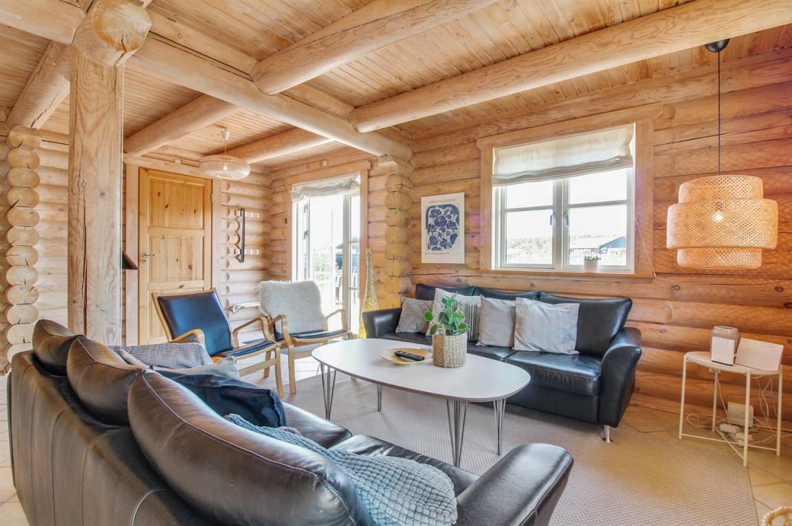 Ferienhaus am Ende einer Sackgasse in einem ruhigen Ferienhausgebiet. Das Haus ist ein schönes Blockhaus mit 60 m² offenem Obergeschoss, in dem die Kinder viel Zeit zum Spielen verbringen können.