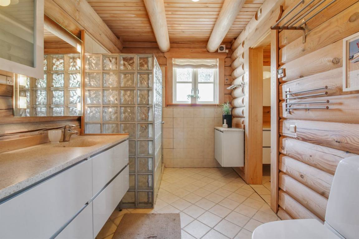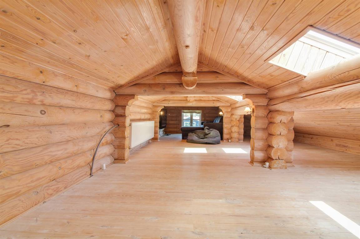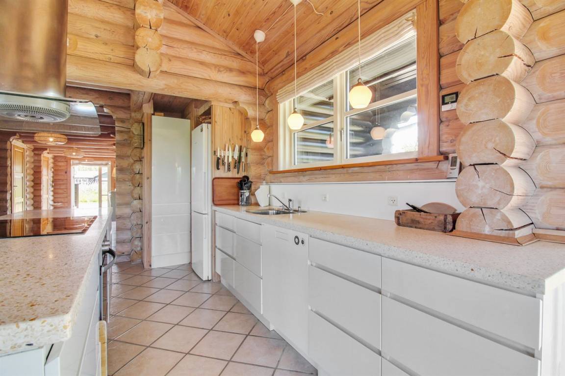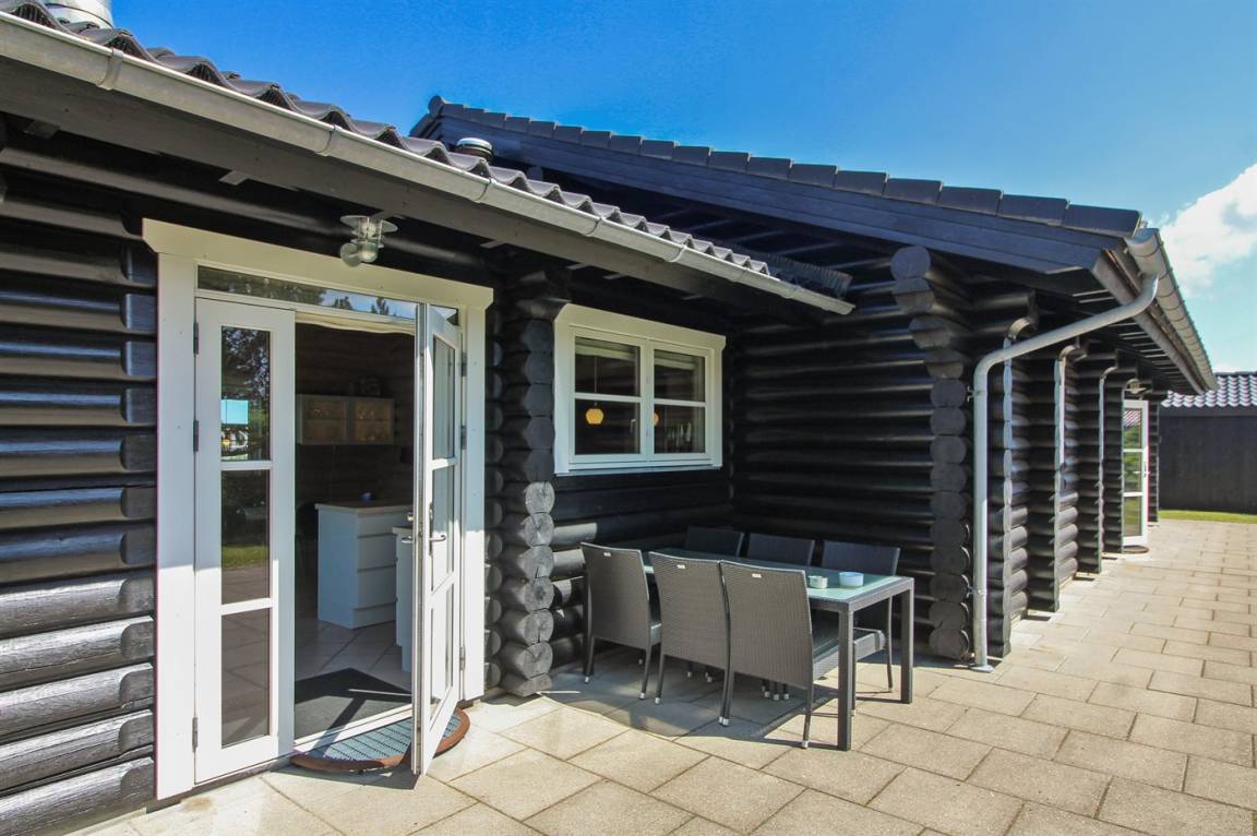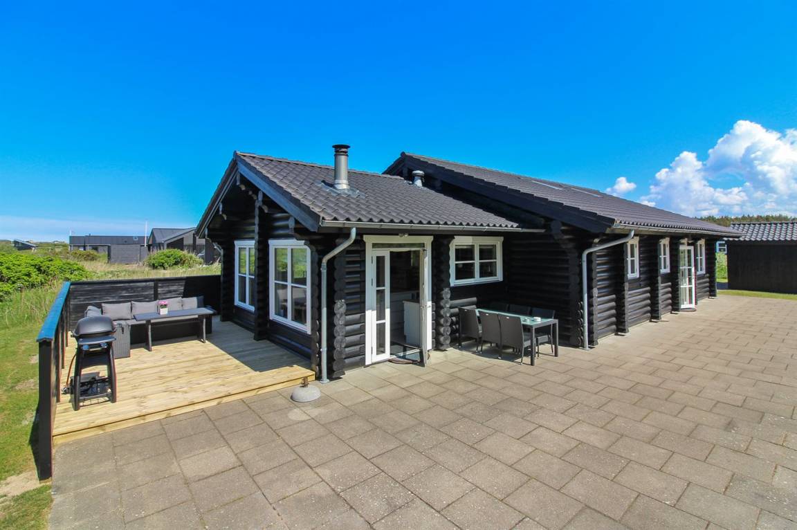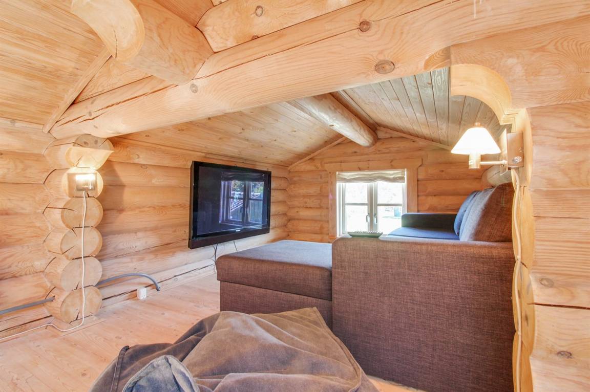 Ferienhaus am Ende einer Sackgasse in einem ruhigen Ferienhausgebiet. Das Haus ist ein schönes Blockhaus mit 60 m² offenem Obergeschoss, in dem die Kinder viel Zeit zum Spielen verbringen können.