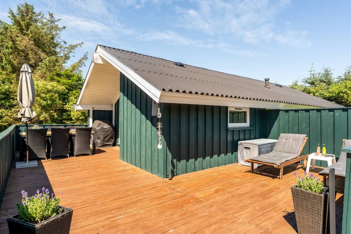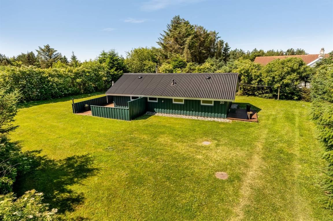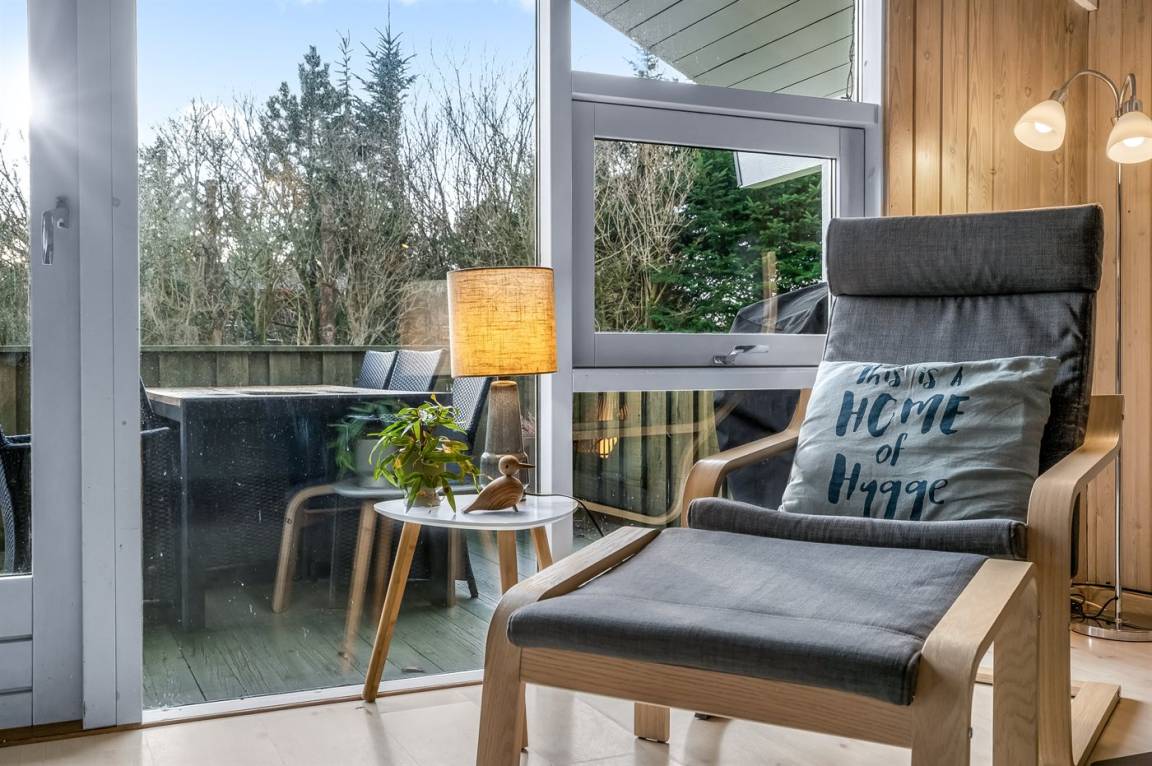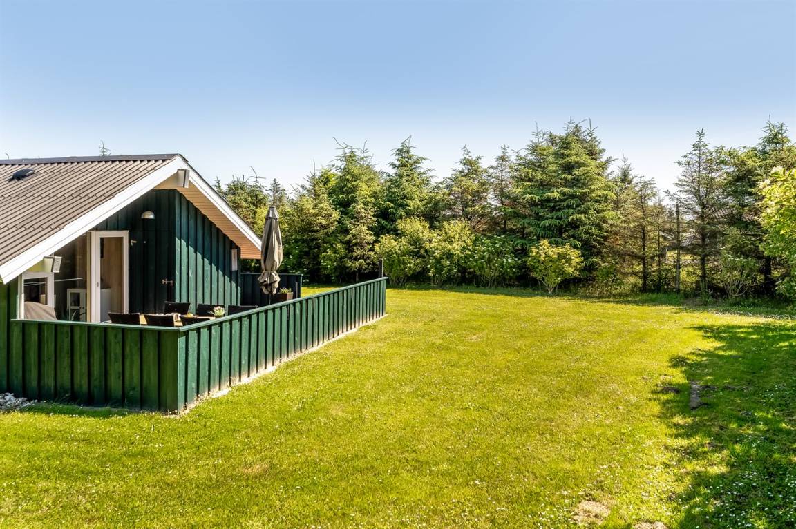 Gemütliches Ferienhaus das auf einem geschlossenen Grundstück in einer attraktiven Ferienhaussiedlung nahe an Strand und Meer liegt.