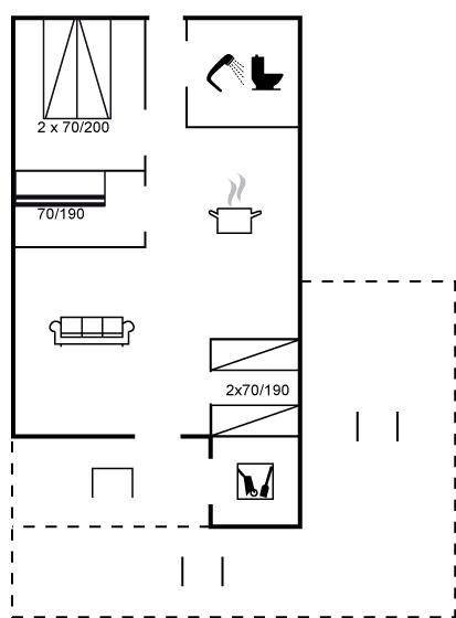 SchlafverhältnisseDie Schlafplätze verteilen sich auf 3 Schlafräume. 2 Schlafplätze in einem Doppelbett. 2 Schlafplätze in Einzelbetten. 2 Schlafplätze in einem Etagenbett. Ferner steht ein Kinderbett zur Verfügung.
