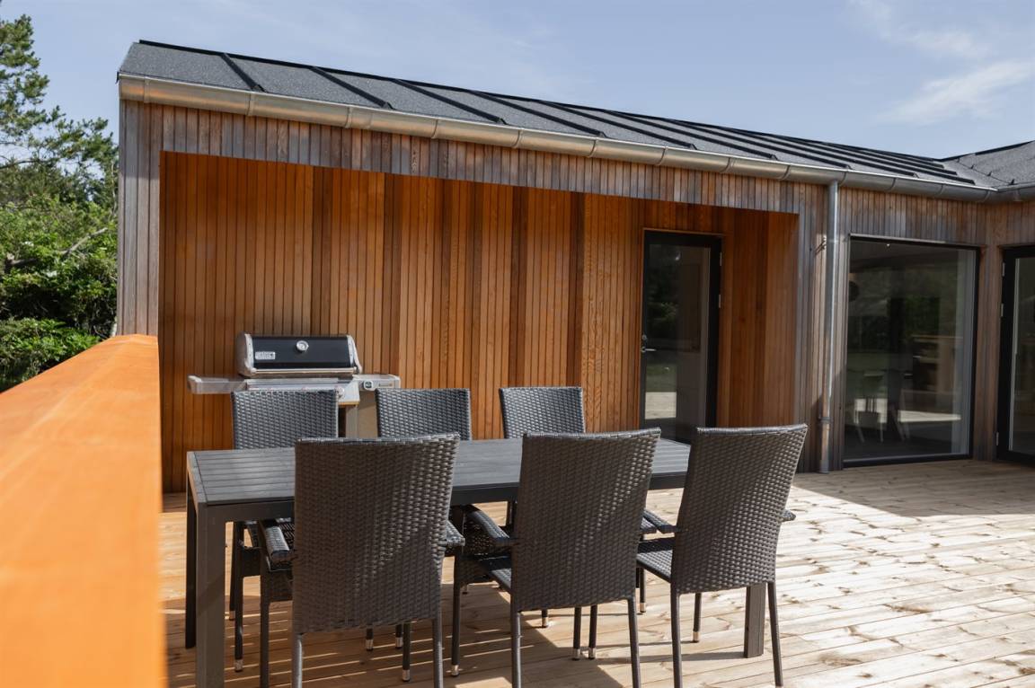 DraußenDie Ferienunterkunft liegt auf einem 1967 m² großen Naturgrundstück. Die Entfernung zum Meer beträgt 600 m. Die nächste Einkaufsmöglichkeit liegt 300 m entfernt. Es steht ein offenes Terrassenareal zur Verfügung. Außerdem gibt es überdachte Terrasse. Trampolin. Außendusche. Es steht ein Grill zur Verfügung. Es ist ein Ladestecker für Elektroautos installiert. Parkplatz auf dem Grundstück.