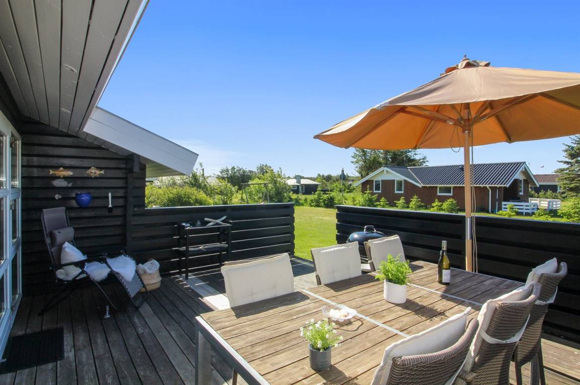 „Advice to other guests: Glæd jer til en dejlig ferie i sommerhuset og nyd det flotte område og fantastiske strand The vacation at the holiday home: Dejligt sommerhus der manglede ikke noget og fin velkomst med vin og chokolade The local office: Sød og venlig betjening Cleanliness: Vinduer noget beskidte rent på overfladen men en del støv og spindelvæv The holiday home itself: Huset er godt indrettet og fine terasser“