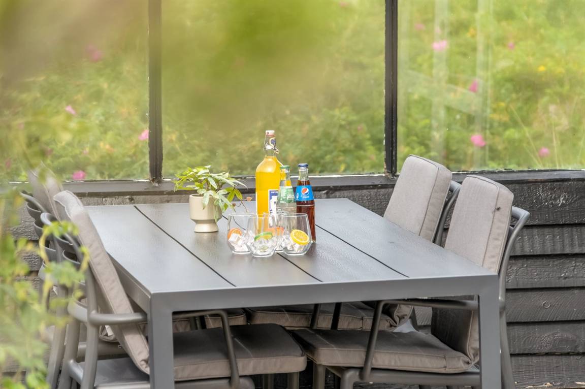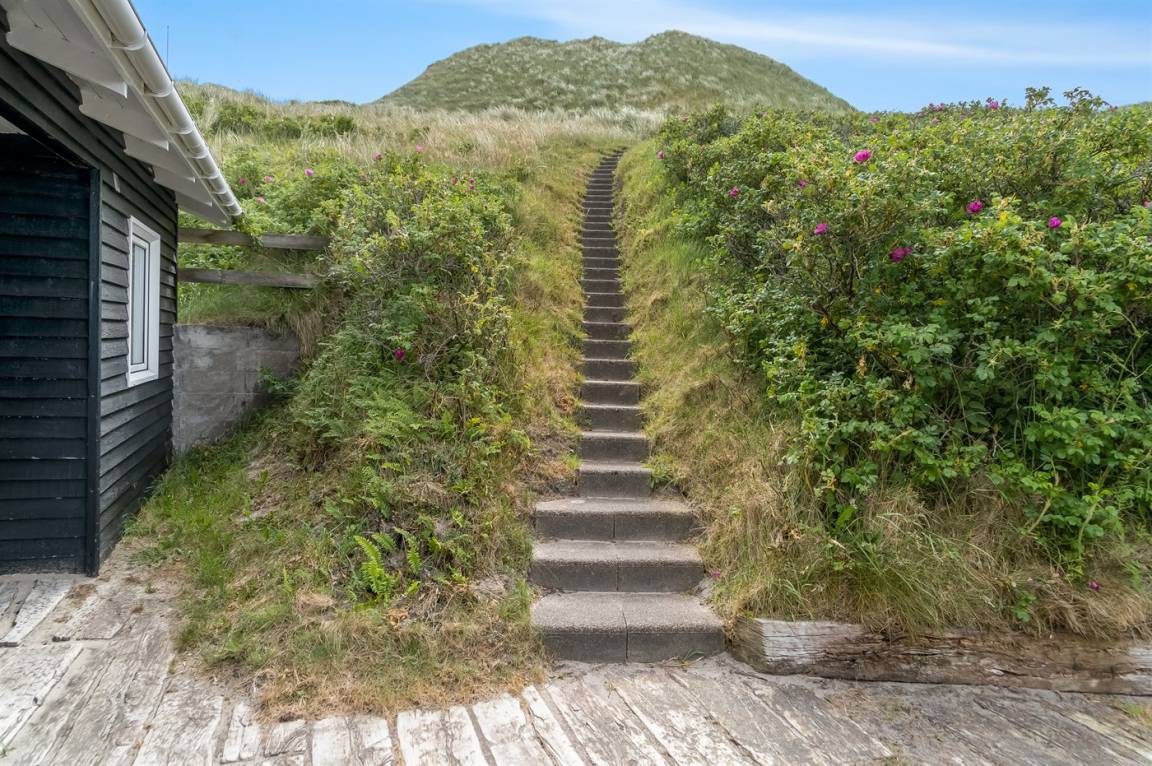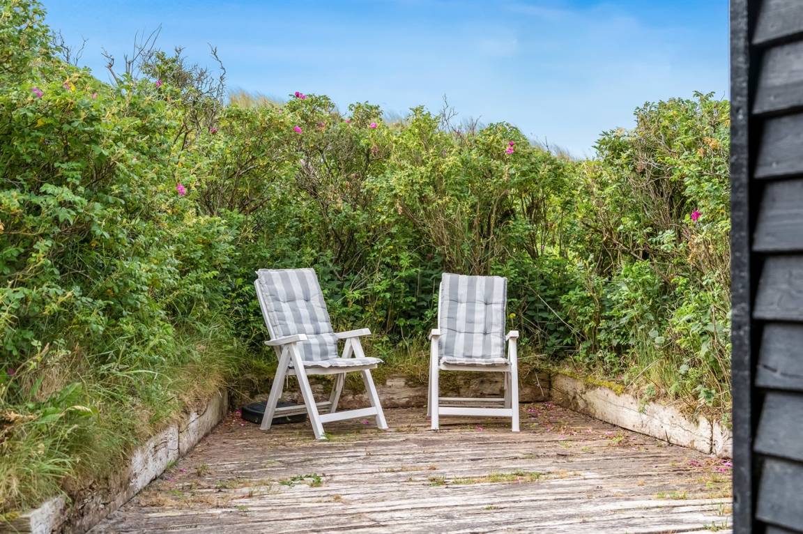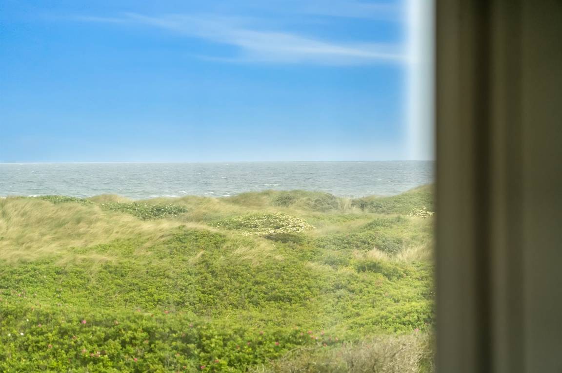 DraußenDie Ferienunterkunft liegt auf einem 2700 m² großen Dünengrundstück. Die Entfernung zum Meer beträgt 150 m. Die nächste Einkaufsmöglichkeit liegt 2000 m entfernt. Es steht ein 15 m² Terrassenareal zur Verfügung. Außerdem gibt es 15 m² überdachte Terrasse. Geräteraum.