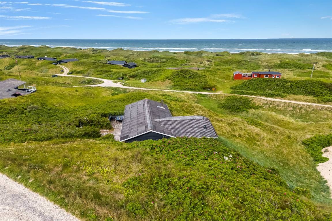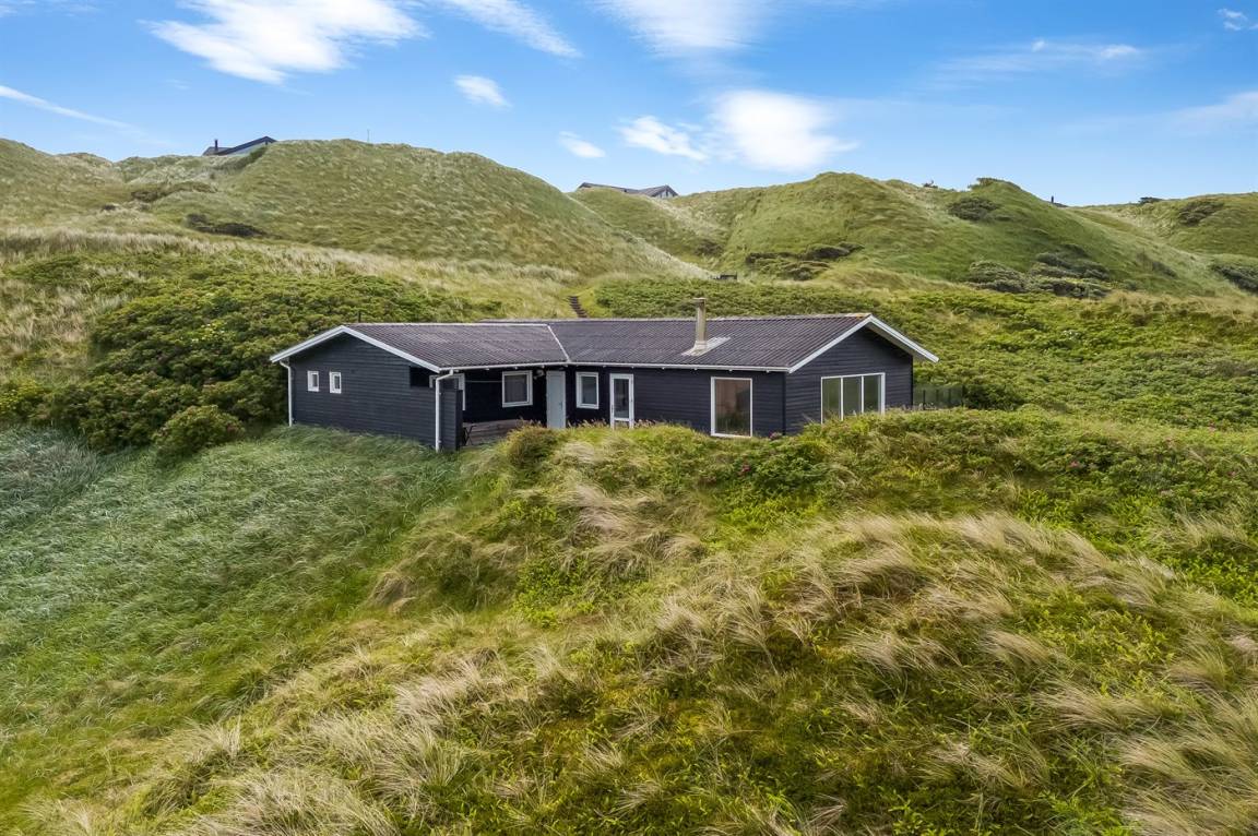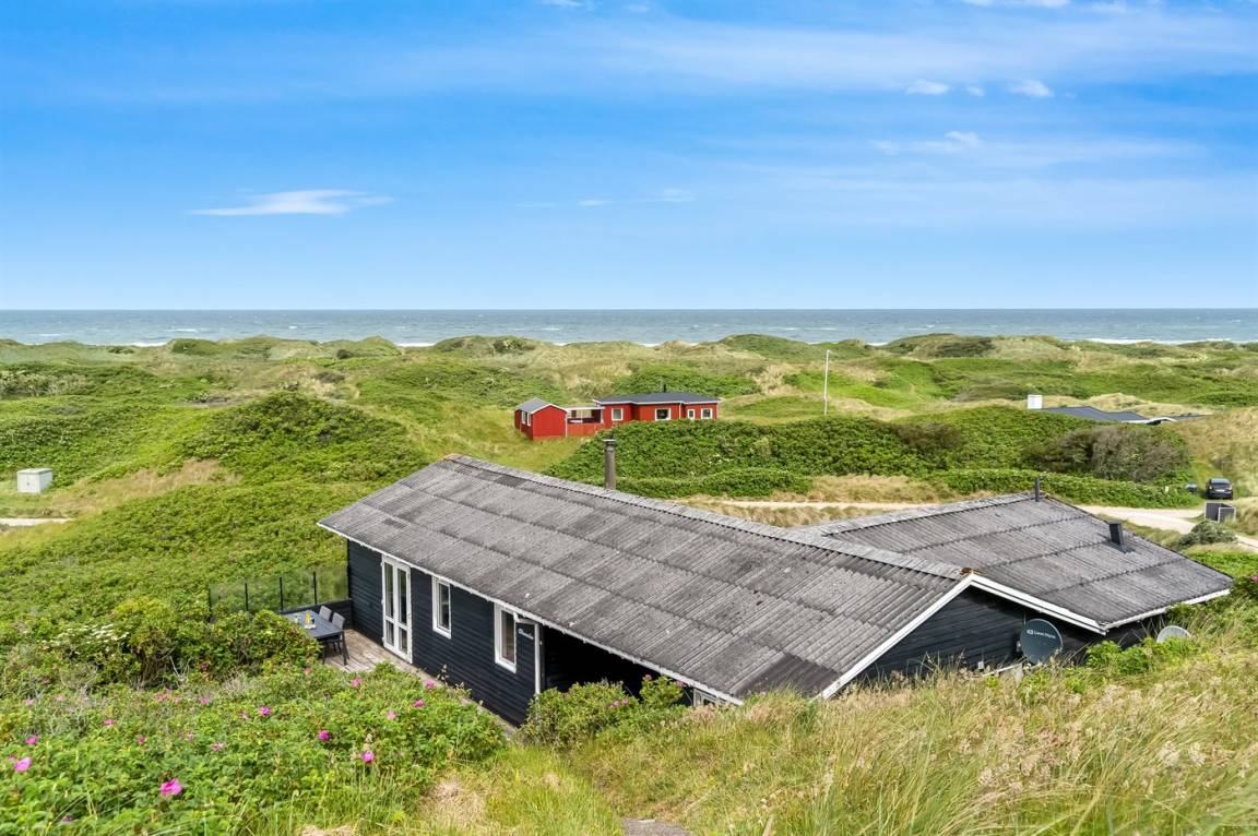 Panoramameerblick! Ein besonders gut gelegenes und gepflegtes Ferienhaus. Das Haus liegt hoch auf einem prachtvollen Dünengrundstück mit Aussicht über die Dünen und das Meer – im naturschönen Gebiet Kettrup Bjerge. Da das Grundstück sehr hügelig ist, müssen Sie etwa 30 m vom Haus entfernt parken (höchstens 2 PKW's). Das Haus ist für Gehbehinderte nicht geeignet.