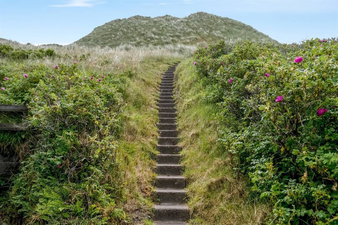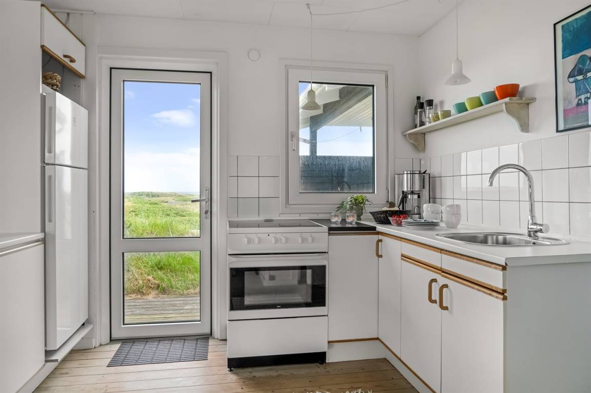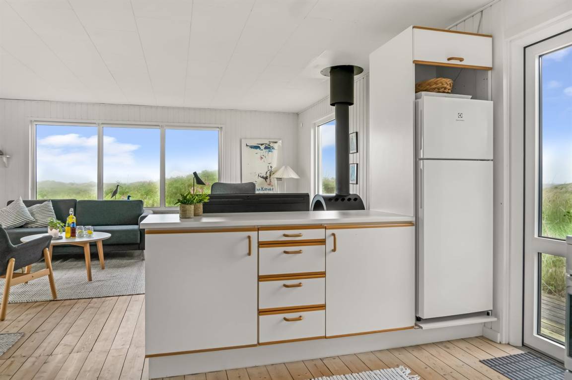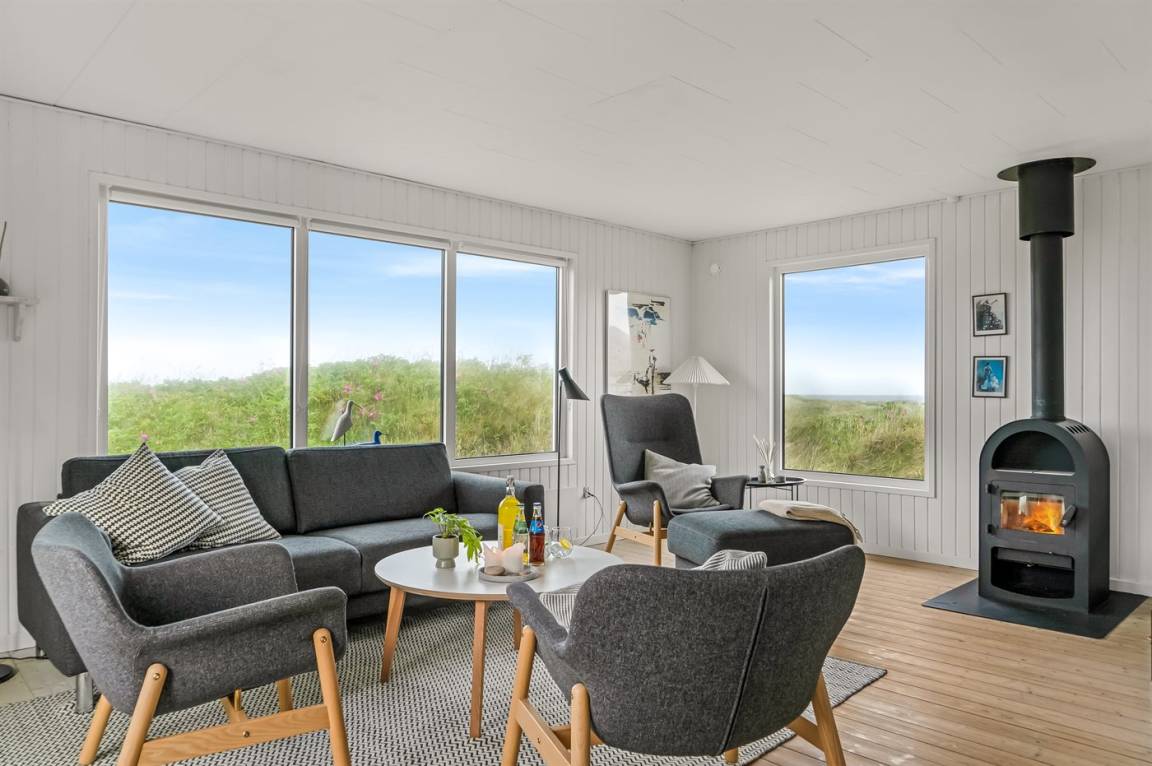 Panoramameerblick! Ein besonders gut gelegenes und gepflegtes Ferienhaus. Das Haus liegt hoch auf einem prachtvollen Dünengrundstück mit Aussicht über die Dünen und das Meer – im naturschönen Gebiet Kettrup Bjerge. Da das Grundstück sehr hügelig ist, müssen Sie etwa 30 m vom Haus entfernt parken (höchstens 2 PKW's). Das Haus ist für Gehbehinderte nicht geeignet.
