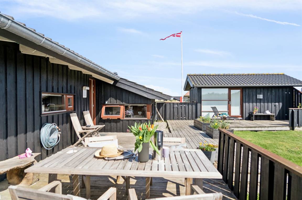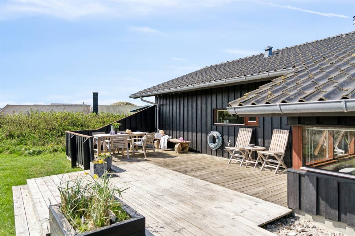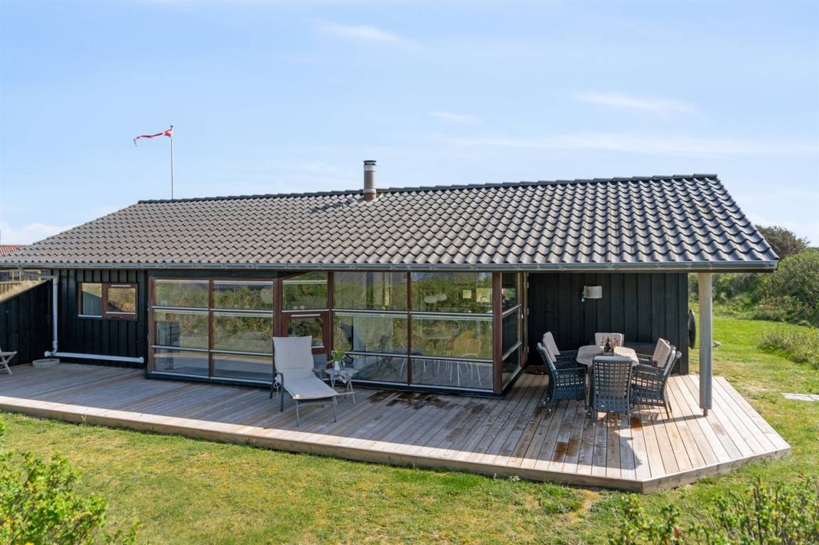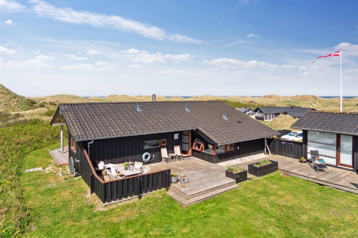 Ein schönes, einladendes Ferienhaus mit einer phantastischen Lage - unmittelbar hinter den Dünen am schönen Strand der Nordsee. Das Haus liegt auf einem leicht hügeligen Grundstück in einem naturschönen und beliebten Gebiet – dicht an einer Ferienanlage mit Badeland und verschiedenen Aktivitäten.