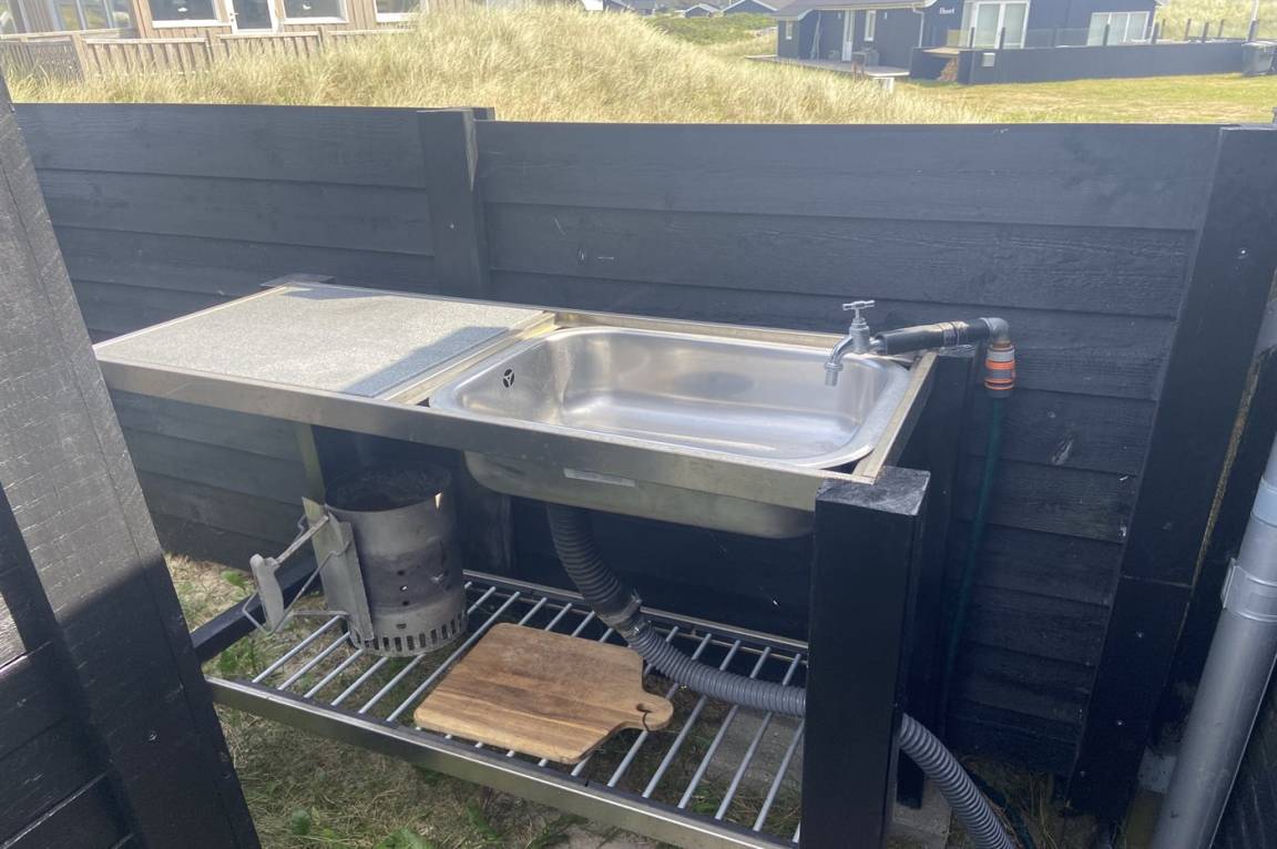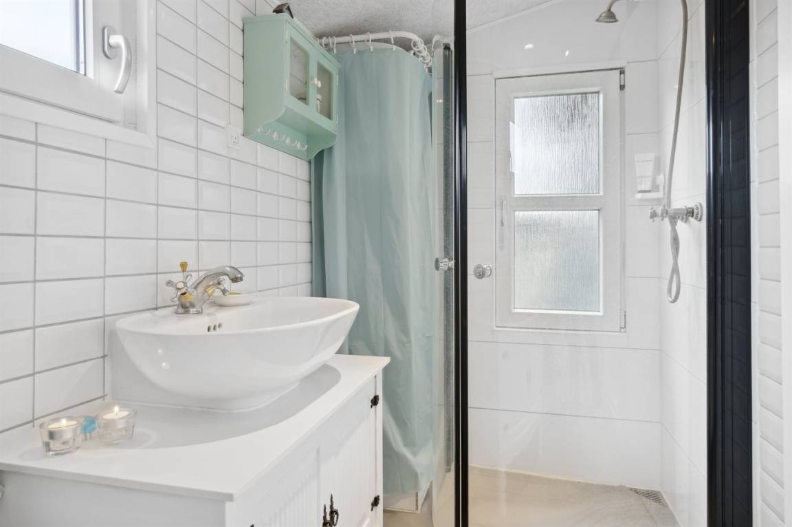 DraußenDie Ferienunterkunft liegt auf einem 700 m² großen Naturgrundstück. Die Entfernung zum Meer beträgt 200 m. Die nächste Einkaufsmöglichkeit liegt 500 m entfernt. Es steht ein offenes Terrassenareal zur Verfügung. Außendusche. Es steht ein Grill zur Verfügung. Parkplatz auf dem Grundstück.
