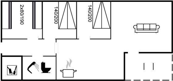 MultimedienIn der Ferienunterkunft gibt es einen Fernseher. LED-Fernseher. DVD-Player. Radio. Mindestens 4 dänische Fernsehsender. 1-3 schwedische Fernsehsender. 1-3 norwegische Fernsehsender. Mindestens 4 deutsche Fernsehsender. 1-3 englische Fernsehsender. Es steht kabellose Internetverbindung zur Verfügung.