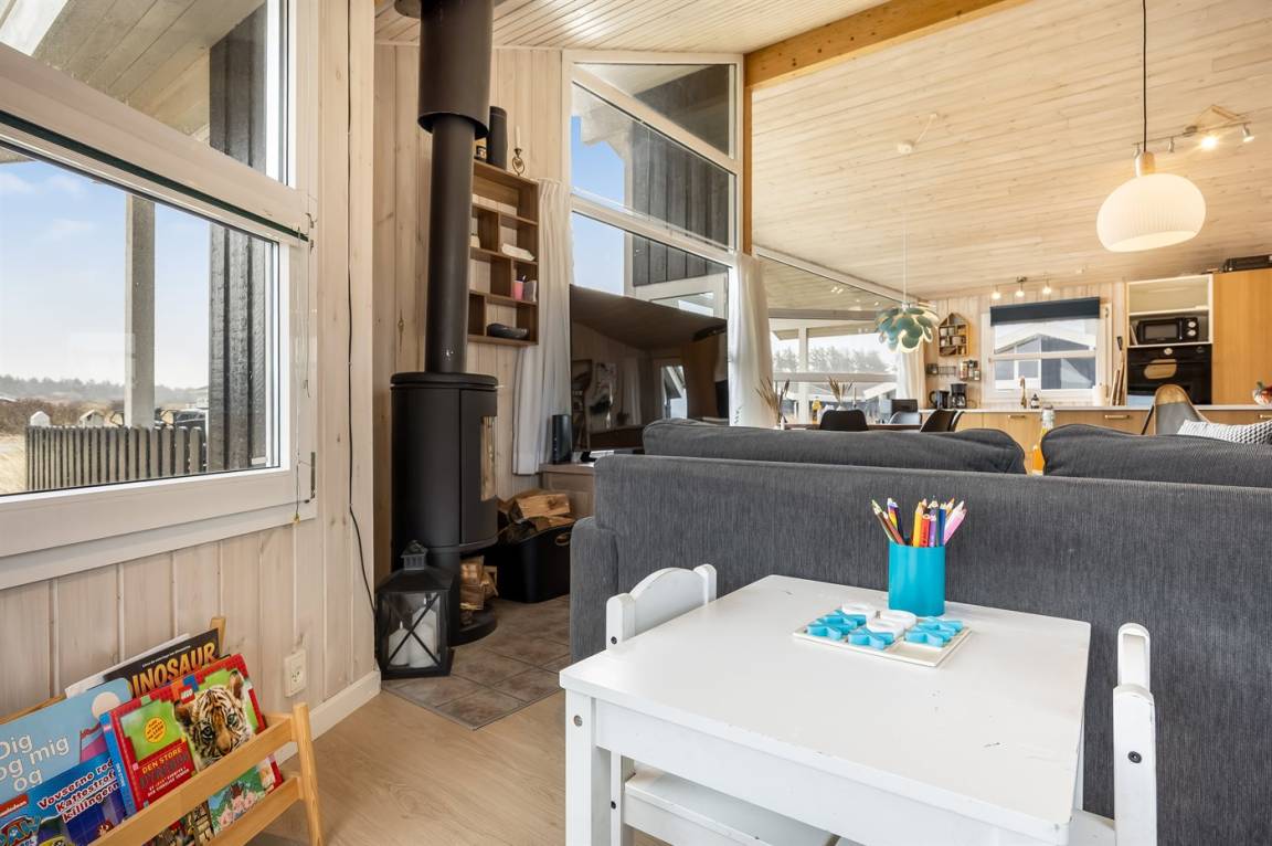 Das Ferienhaus eignet sich für 8 Personen sowie 1 Kleinkind bis zu 3 Jahren. 2 der Schlafplätze eignen sich jedoch nur für größere Kinder (4-11 Jahre). Die Ferienunterkunft hat eine Wohnfläche von 90 m² und wurde 1999 gebaut. 2019 wurde die Ferienunterkunft teilweise renoviert. Haustiere dürfen nicht mitgebracht werden. Die Ferienunterkunft ist mit energiesparender Wärmepumpe ausgestattet. Die Ferienunterkunft ist mit Waschmaschine ausgestattet. Tiefkühlmöglichkeit mit 30 Liter Nutzinhalt. Es gibt außerdem einen Kaminofen. Für die jüngsten Feriengäste ist 1 Kinderhochstuhl vorhanden. Wickeltisch.