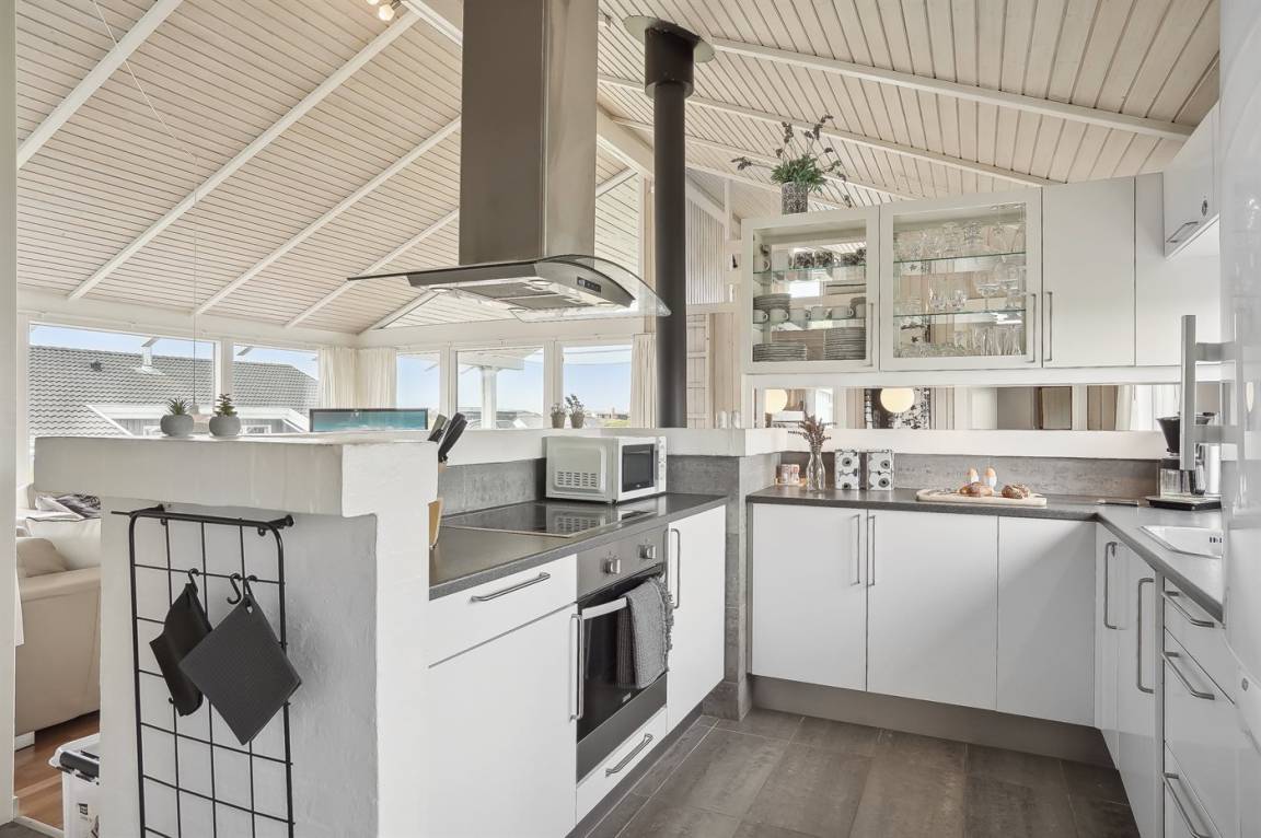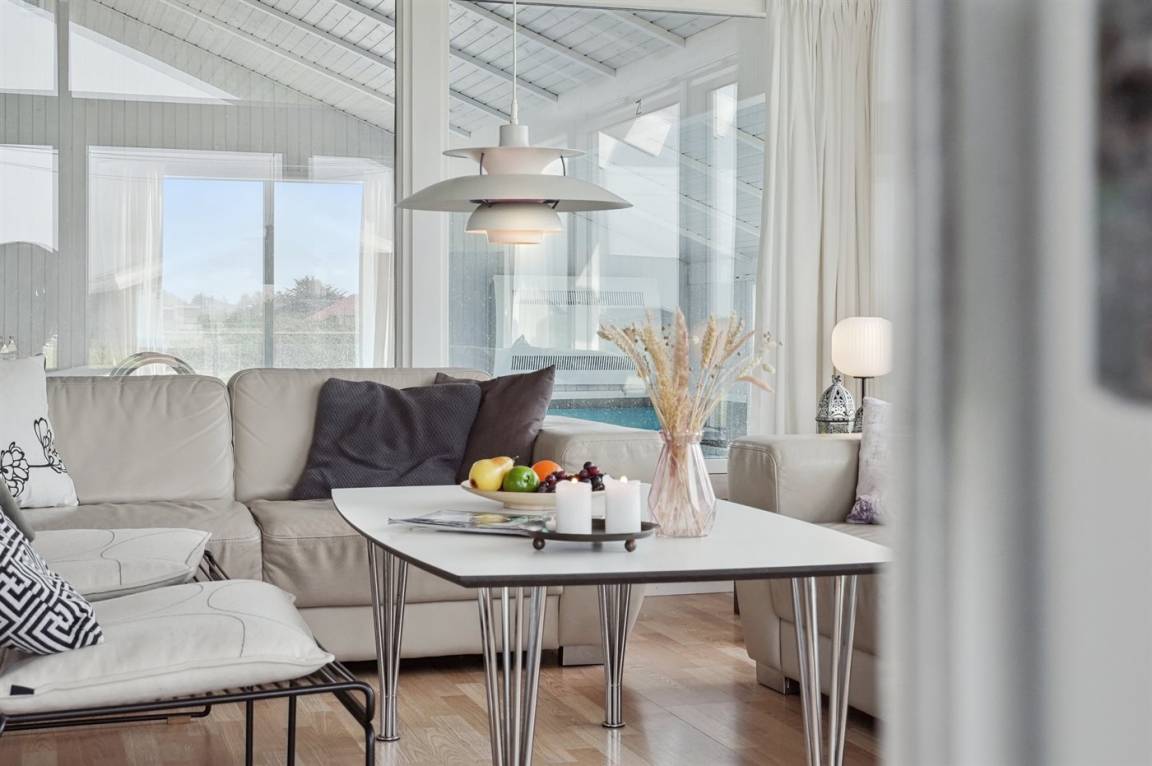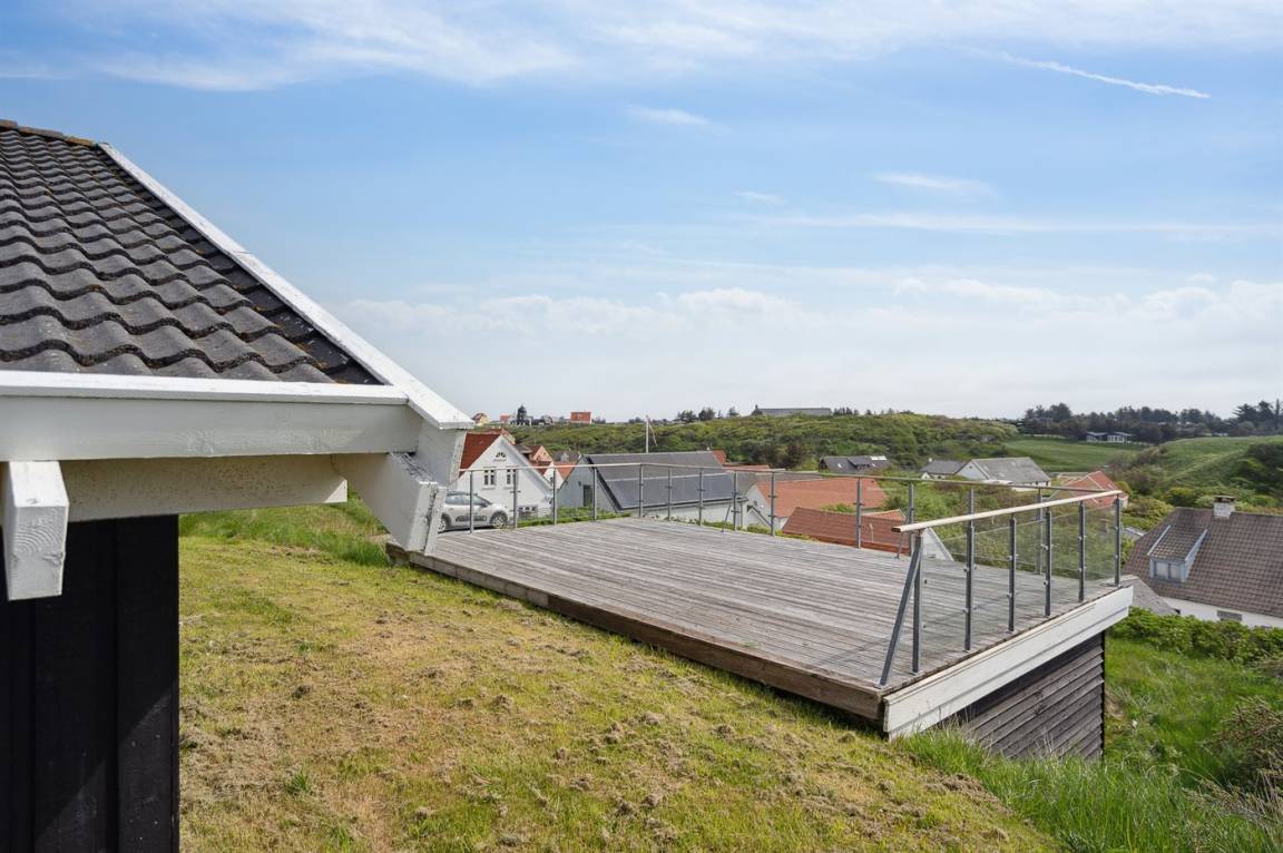 Herrliches Ferienhaus mit Pool in erhöhter Lage in Lønstrup mit Blick auf den Ort und die schöne Natur. In der Nähe befindet sich ein schöner Badestrand und natürlich Natur, die zu langen Spaziergängen mit dem Hund einlädt. Das Ferienhaus ist für 1–2 Familien oder mehrere Paare geeignet.