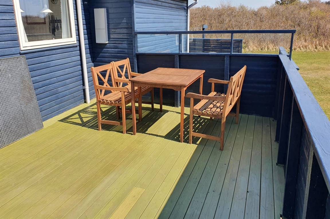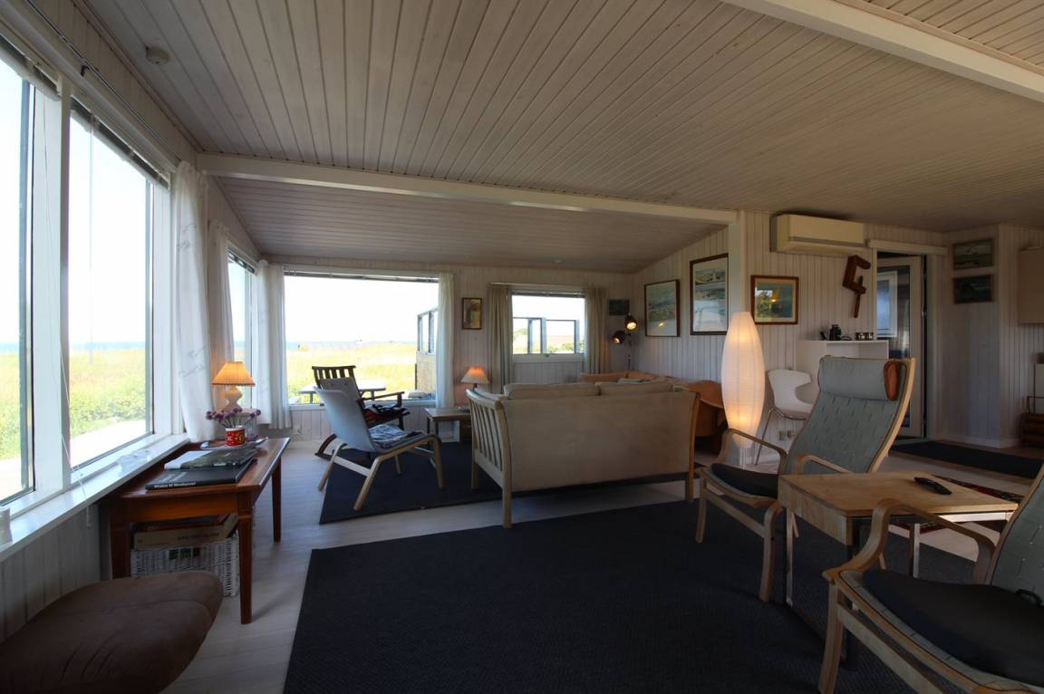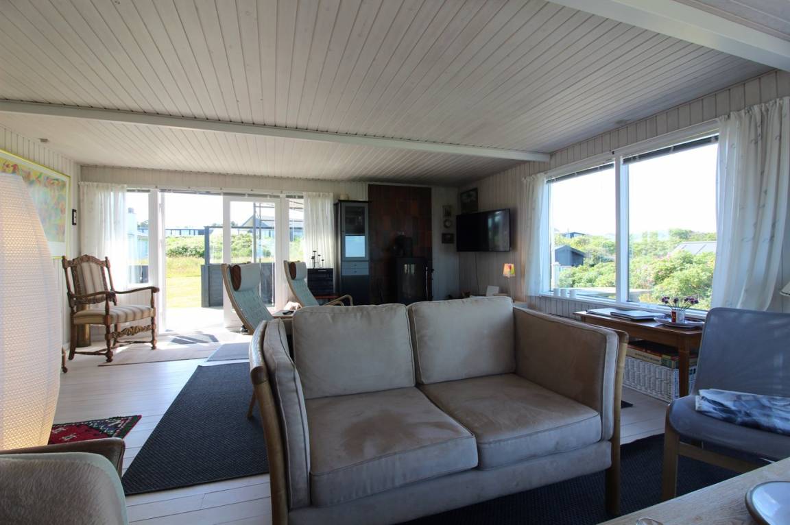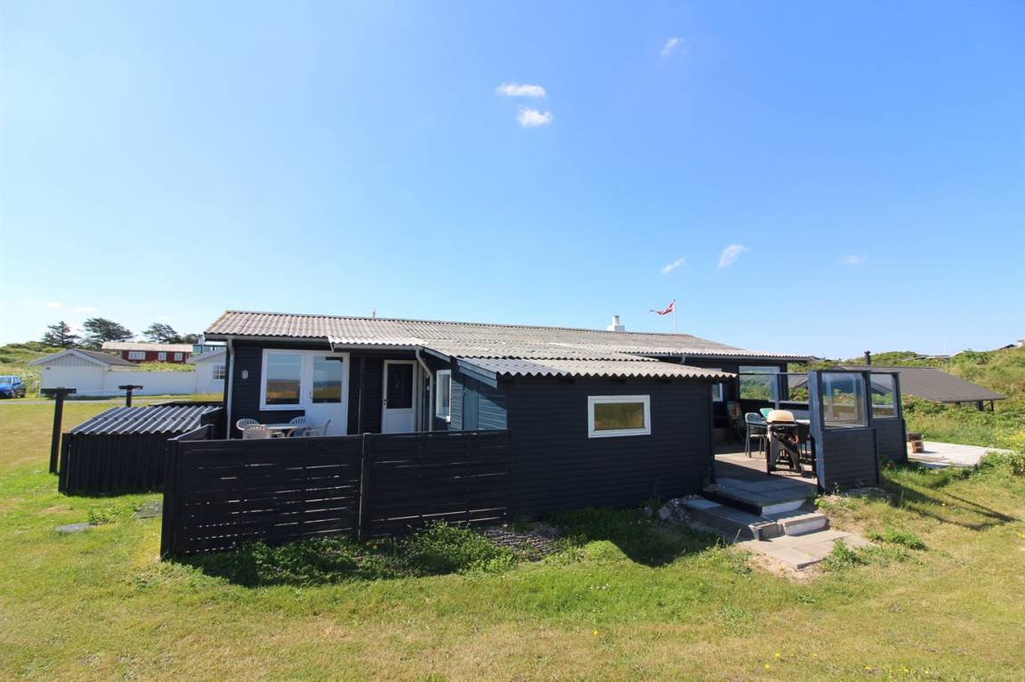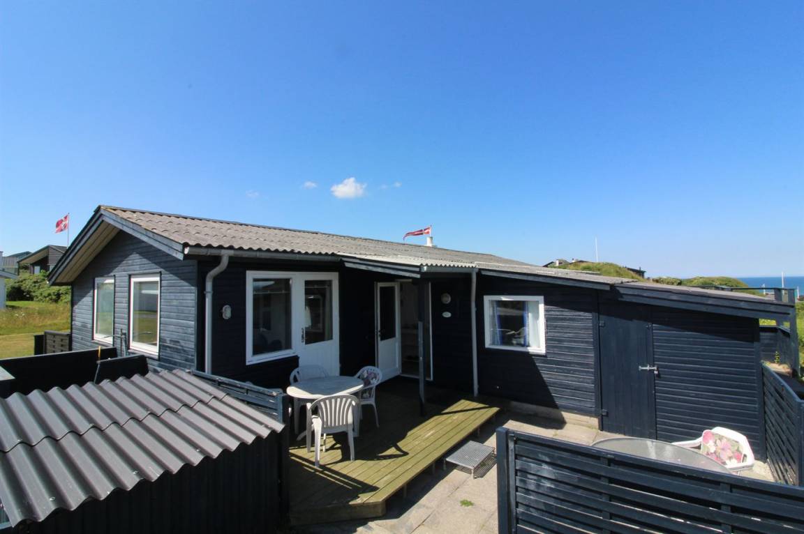Hochgelegenes und geräumiges Ferienhaus mit Ausblick auf das Meer und die Umgebung, sowohl vom Haus als auch vom Grundstück aus. Das Grundstück liegt auf einem leicht abfallenden Gebiet nahe am Meer und ist von Dünen und Heckenrosen umgeben.
