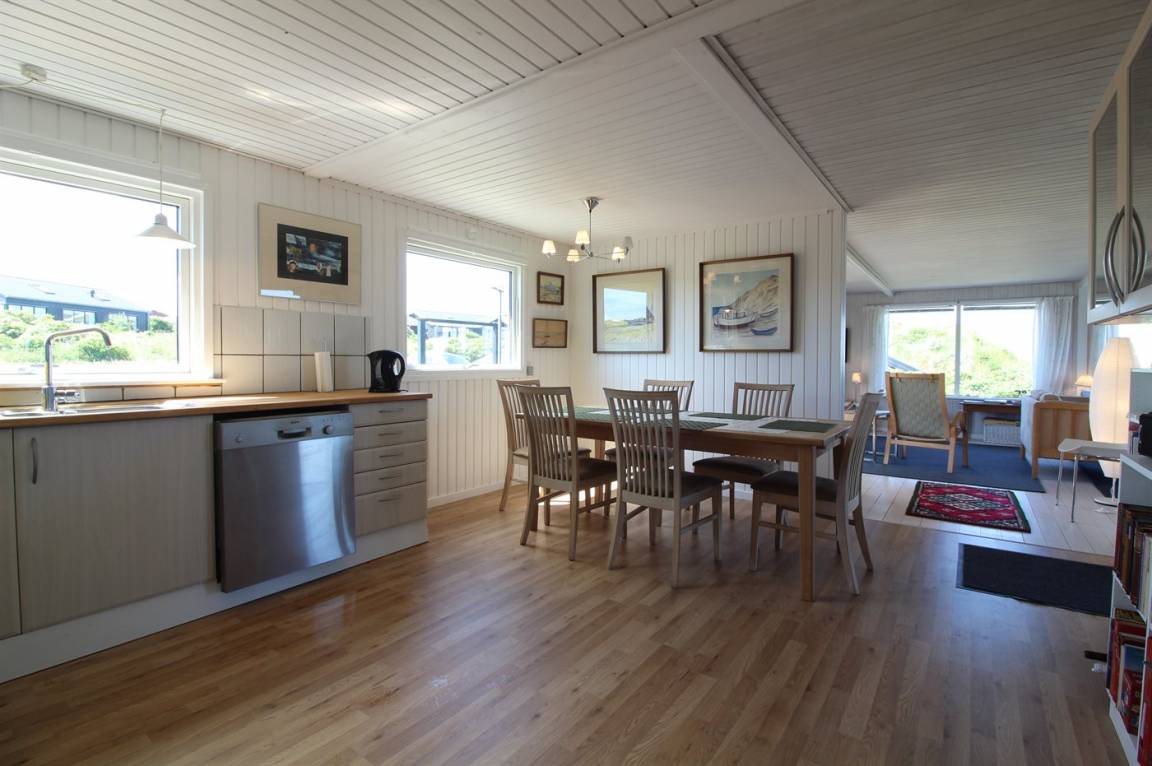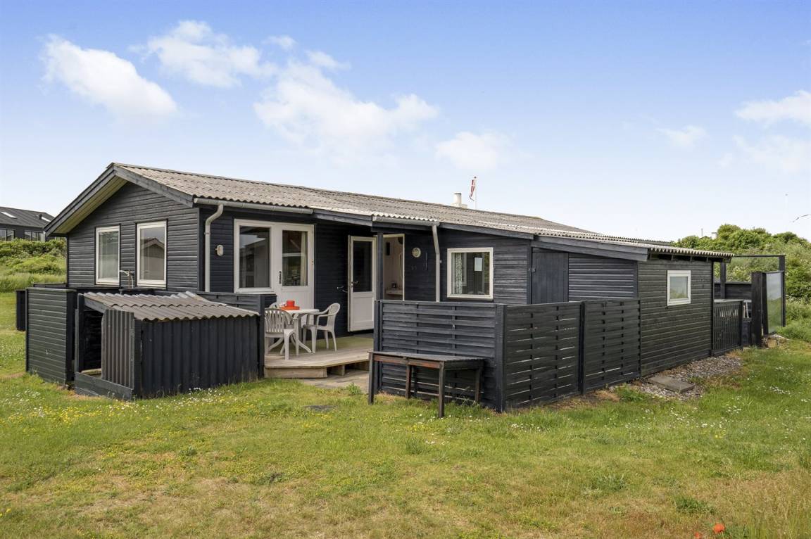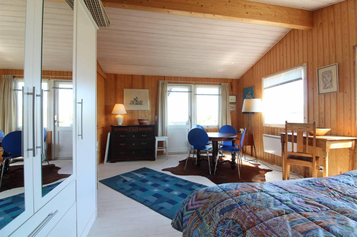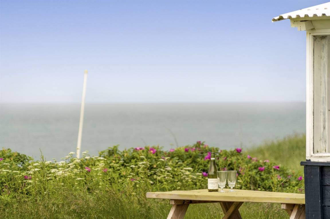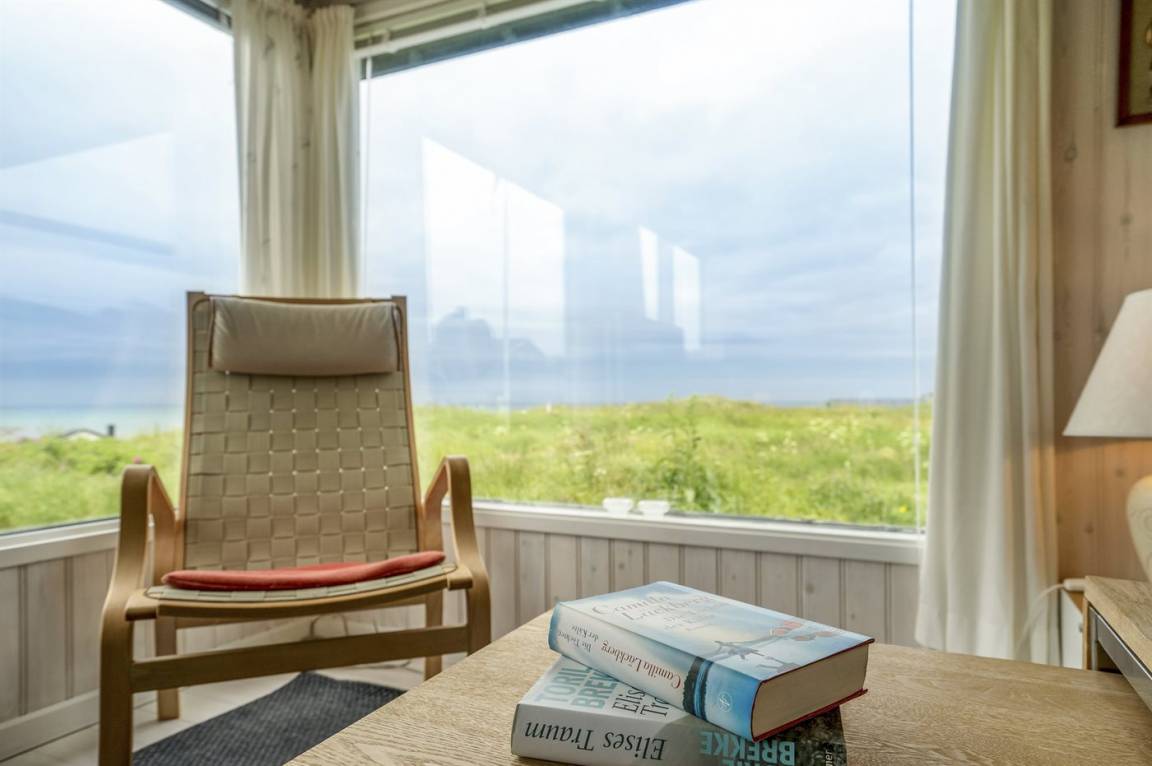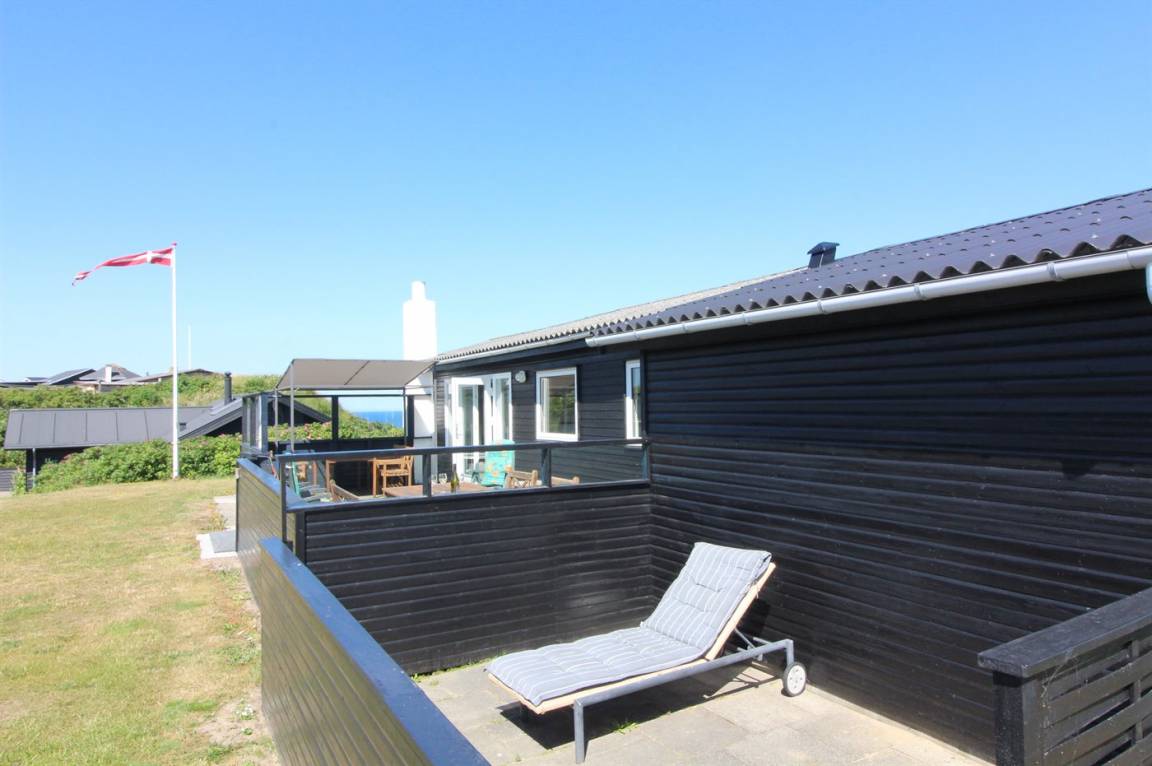 Hochgelegenes und geräumiges Ferienhaus mit Ausblick auf das Meer und die Umgebung, sowohl vom Haus als auch vom Grundstück aus. Das Grundstück liegt auf einem leicht abfallenden Gebiet nahe am Meer und ist von Dünen und Heckenrosen umgeben.