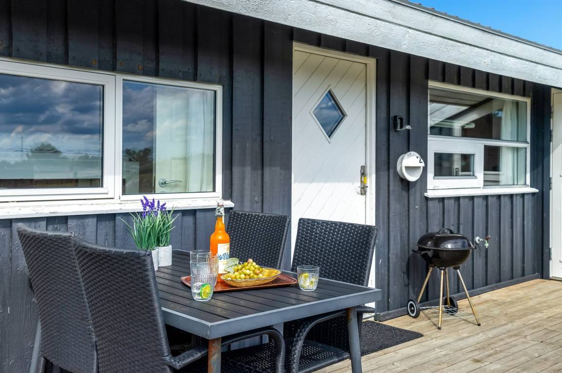 DraußenDie Ferienunterkunft liegt auf einem 1000 m² großen Naturgrundstück. Die Entfernung zum Meer beträgt 200 m. Die nächste Einkaufsmöglichkeit liegt 300 m entfernt. Es steht ein 90 m² Terrassenareal zur Verfügung. Davon insgesamt 80 m² geschlossene Terrasse. Geräteraum. Sandkasten. Es steht ein Grill zur Verfügung. Parkplatz auf dem Grundstück.