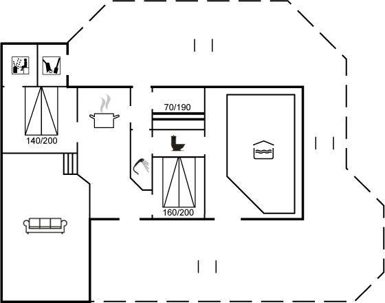 SchlafverhältnisseDie Schlafplätze verteilen sich auf 3 Schlafräume. 4 Schlafplätze in Doppelbetten. 2 Schlafplätze in einem Etagenbett. Ferner steht ein Kinderbett zur Verfügung.