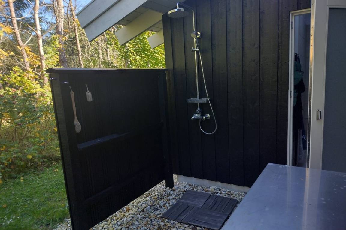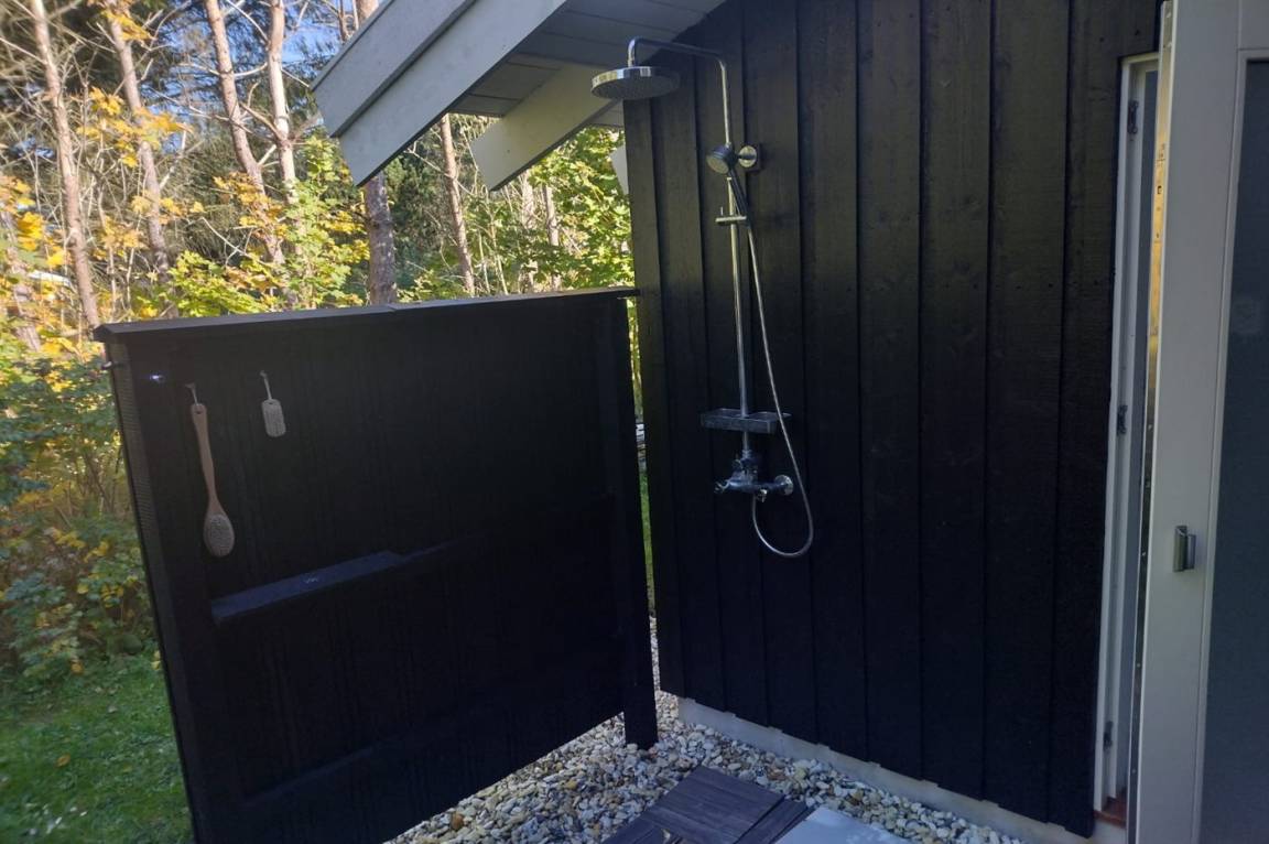 DraußenDie Ferienunterkunft liegt auf einem 1725 m² großen Naturgrundstück. Die Entfernung zum Meer beträgt 800 m. Die nächste Einkaufsmöglichkeit liegt 400 m entfernt. Es steht ein 80 m² Terrassenareal zur Verfügung. Außerdem gibt es 20 m² überdachte Terrasse. Geräteraum. Schaukel. Sandkasten.Lagerfeuerstelle. Windschutzhütte. Außendusche. Es steht ein Grill zur Verfügung. Es ist ein Ladestecker für Elektroautos installiert. Mit einer Ladeleistung von 7 kW. Parkplatz auf dem Grundstück.