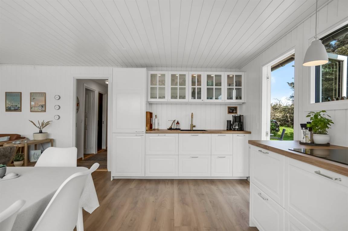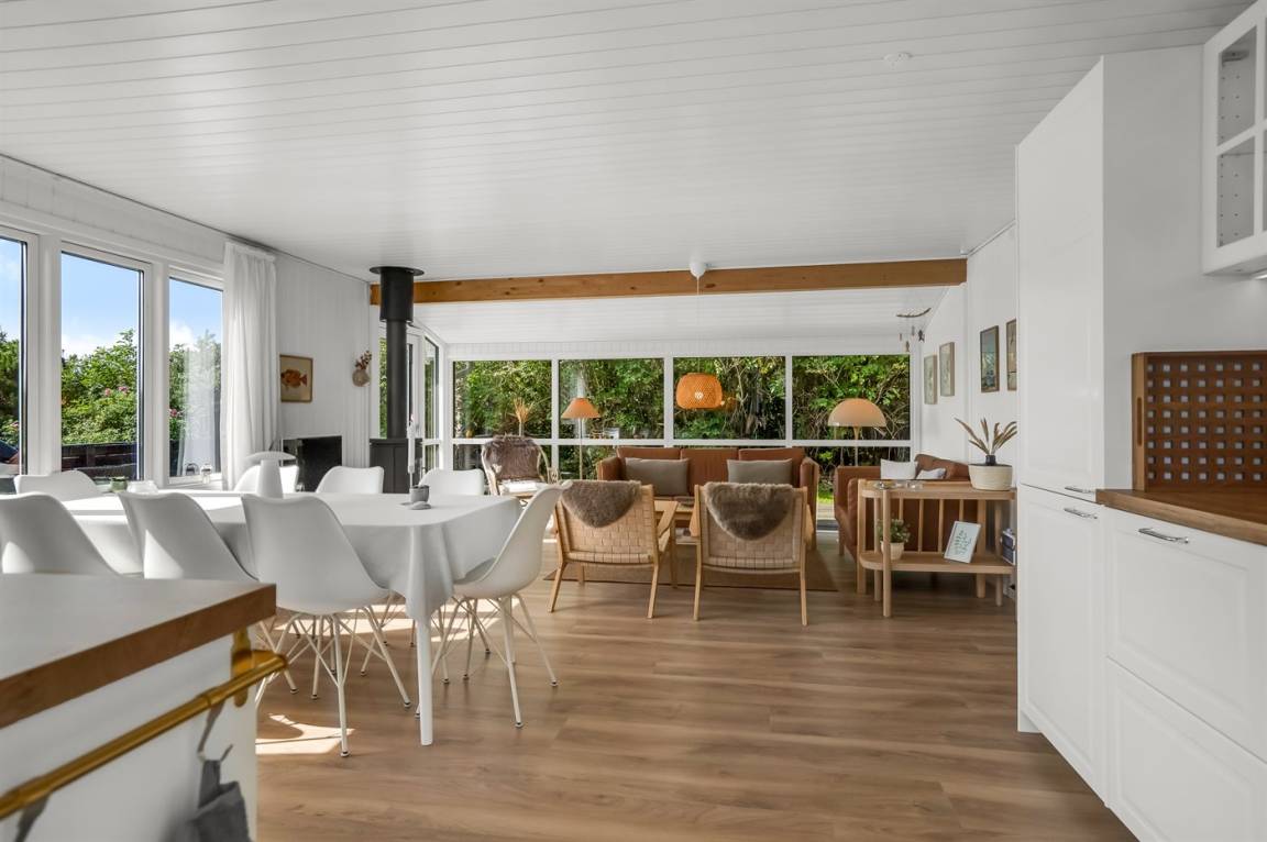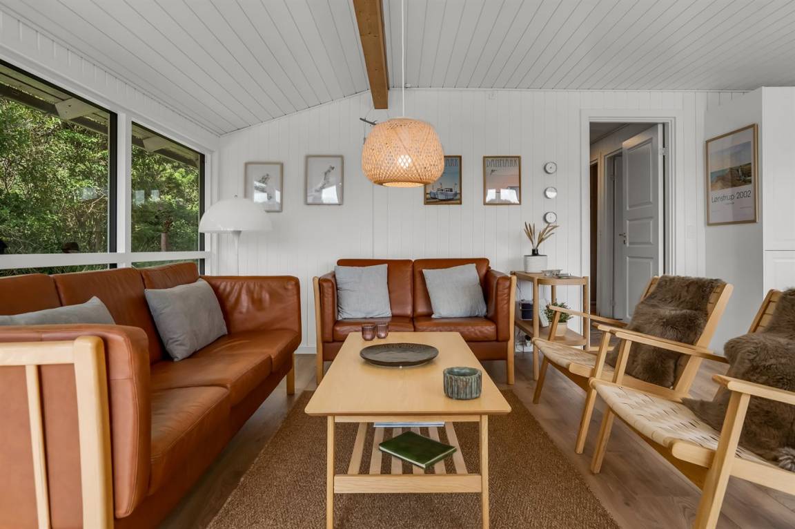 Tolles, erhöht gelegenes Ferienhaus auf einem ungestörten Grundstück inmitten malerischer Natur. Auf der großen Terrasse findet man immer eine geschützte Ecke und die Aussicht auf die ungestörte Natur genießen, die Lønstrup prägt. Das Haus liegt in der Nähe des Steilküstenstreifens bei Mårup Kirkegård, von wo Sie am Steilhang entlang bis zum Leuchtturm von Rubjerg Knude laufen können. Das Zentrum von Lønstrup ist fußläufig zu erreichen. Hier können Sie in einem der vielen gemütlichen Restaurants essen und das Kunsthandwerk bewundern.