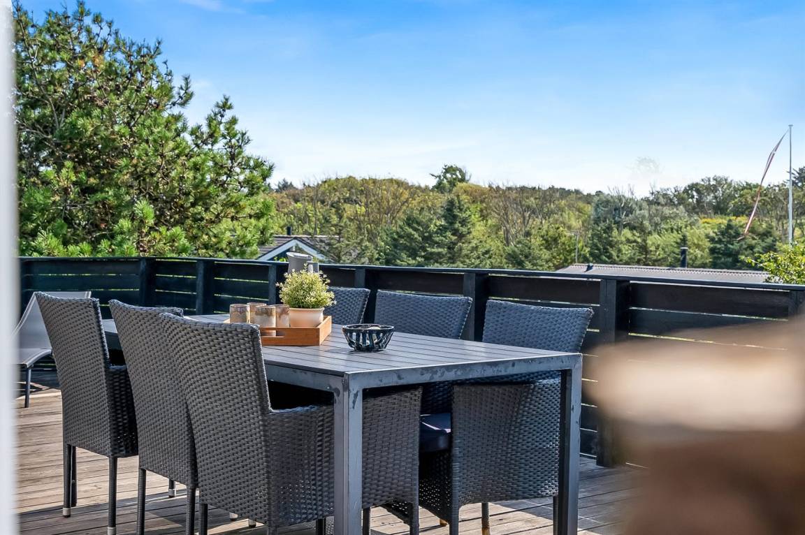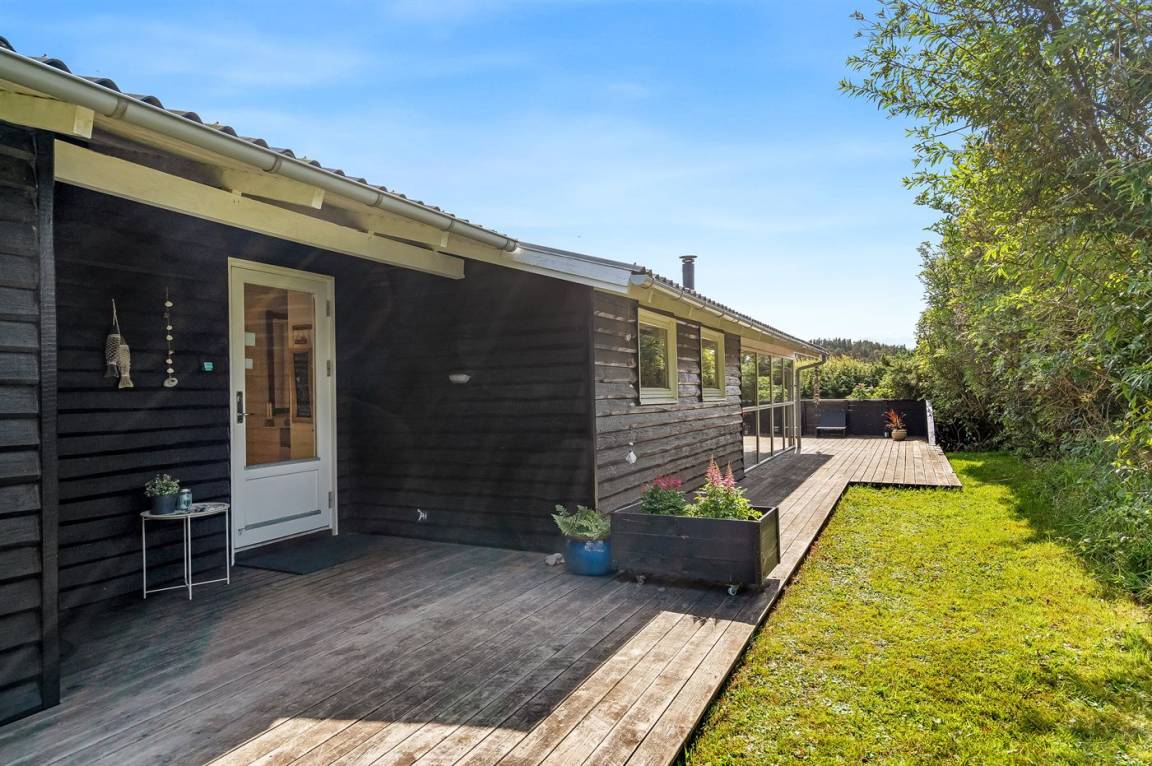 Das Ferienhaus liegt auf einem 1590 m² großen Naturgrundstück. Das Meer ist 400 m weit entfernt, die nächste Treppe zum Wasser 800 m. Das nächste Geschäft ist 500 m weit entfernt. Zur Ferienunterkunft gehört ein 60 m² großer, offener Terrassenbereich. Zudem gibt es eine überdachte Terrasse mit 5 m². Es gibt einen Geräteraum. Parkmöglichkeiten an der Ferienunterkunft. Es ist ein Ladestecker für Elektroautos installiert - mit einer Ladeleistung von 11 kW.